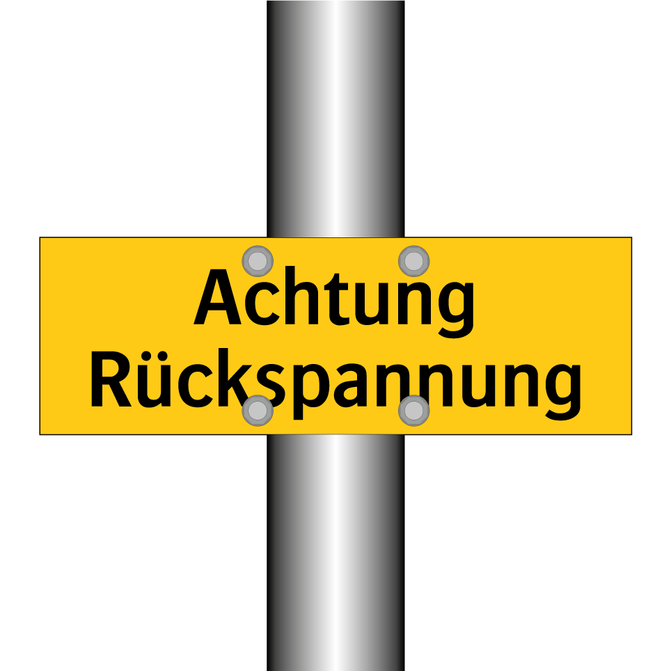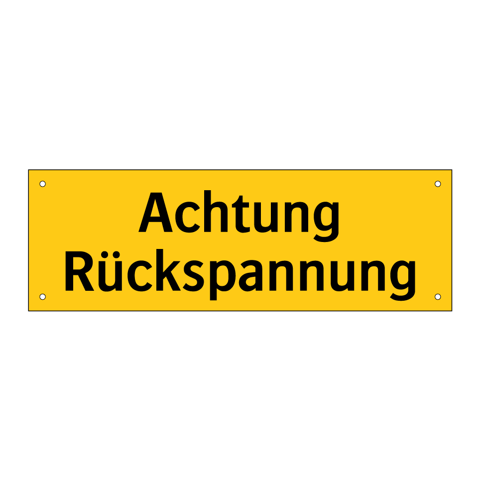 Warnschild mit dem Text Achtung Rückspannung