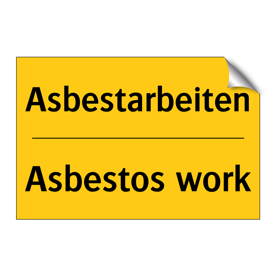 Zweisprachiges Warnschild mit deutschem Text Asbestarbeiten und englischem Text Asbestos work