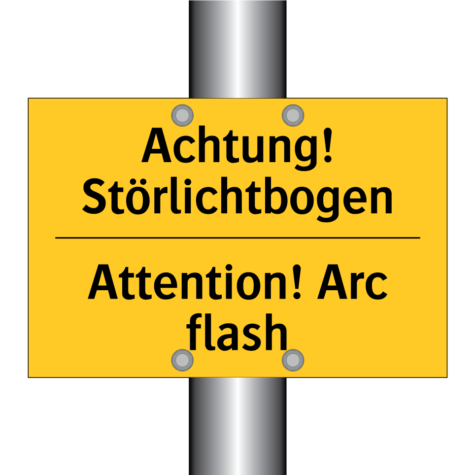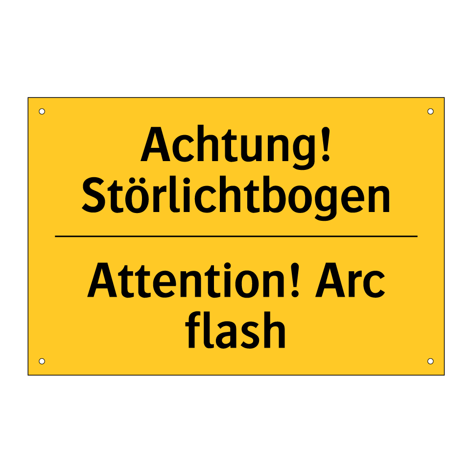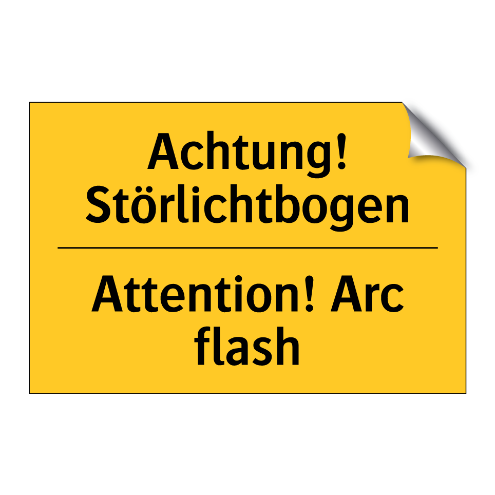 Zweisprachiges Warnschild mit deutschem Text Achtung! Störlichtbogen und englischem Text Attention! Arc flash