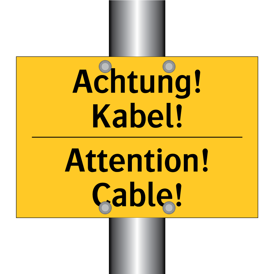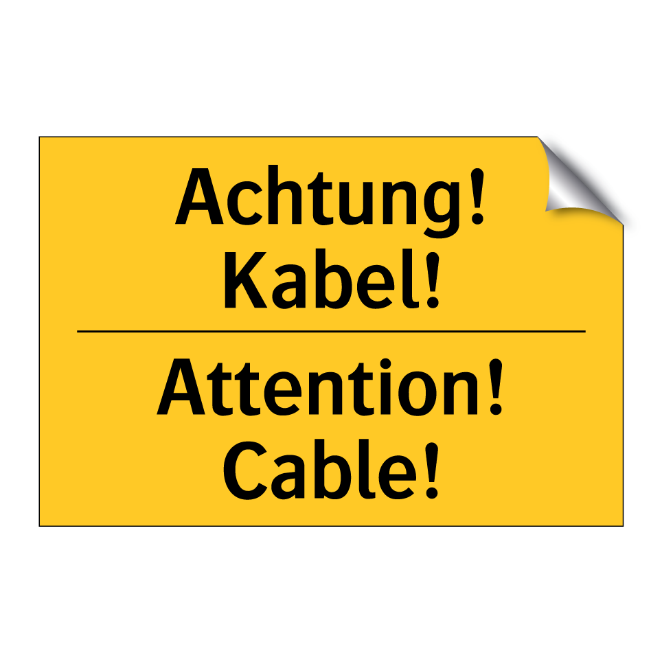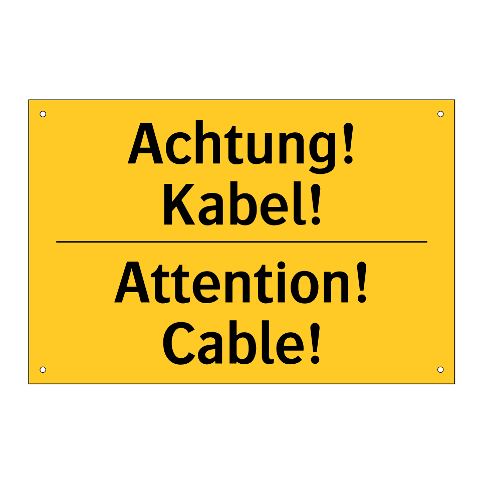 Zweisprachiges Warnschild mit deutschem Text Achtung! Kabel! und englischem Text Attention! Cable!