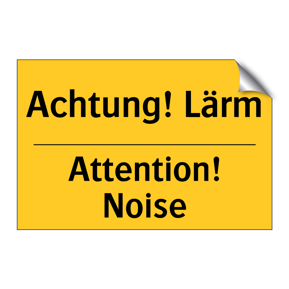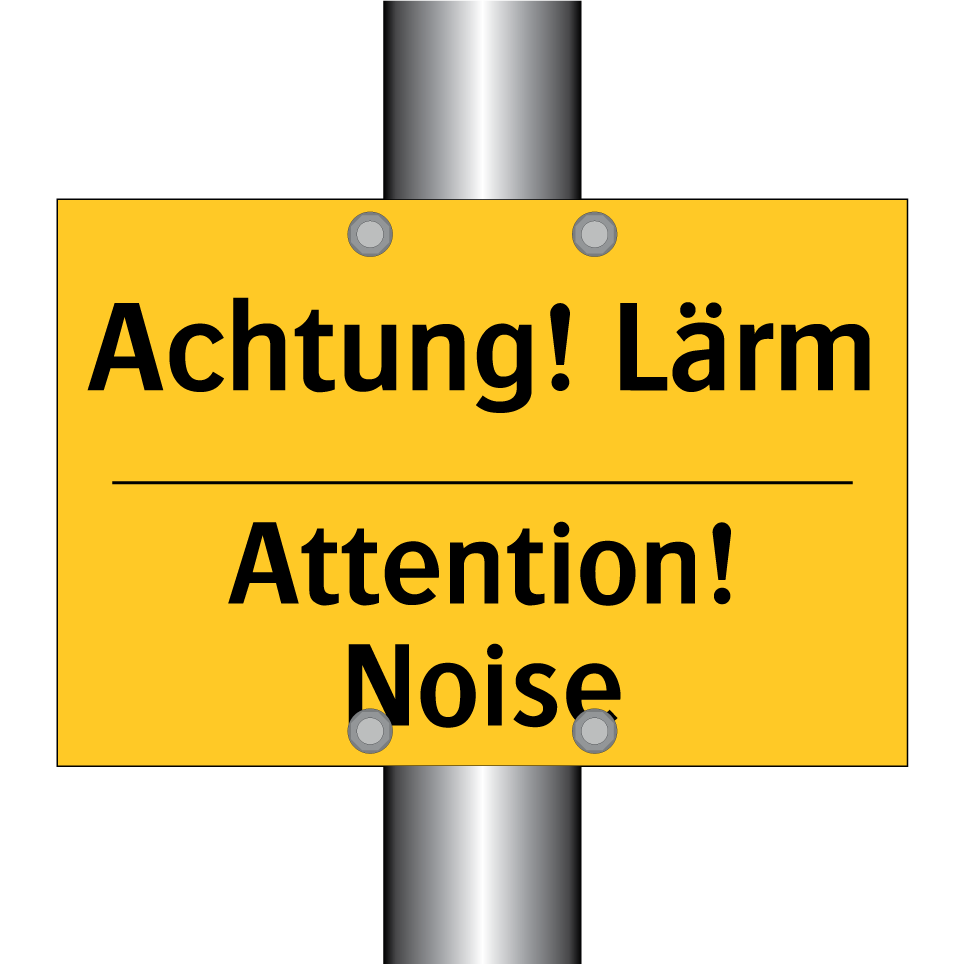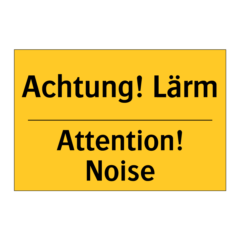 Zweisprachiges Warnschild mit deutschem Text Achtung! Lärm und englischem Text Attention! Noise