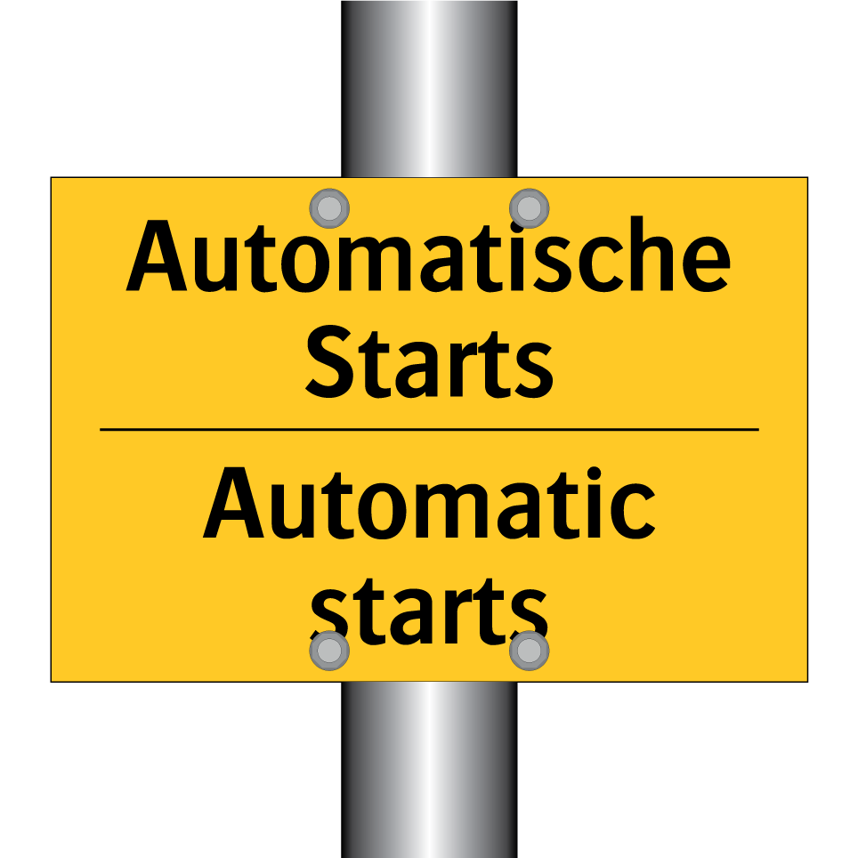 Zweisprachiges Warnschild mit deutschem Text Automatische Starts und englischem Text Automatic starts