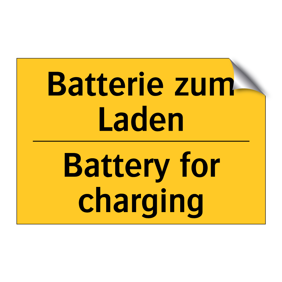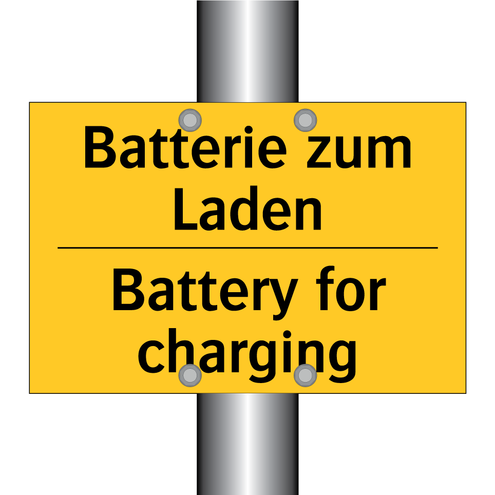Zweisprachiges Warnschild mit deutschem Text Batterie zum Laden und englischem Text Battery for charging