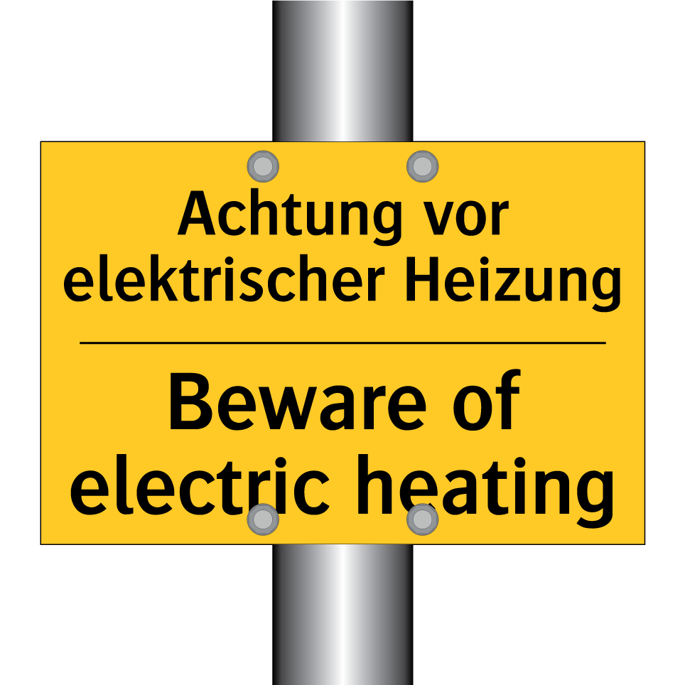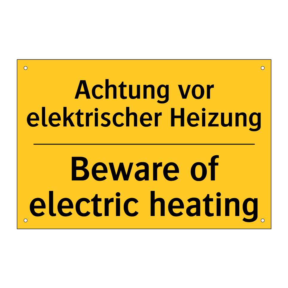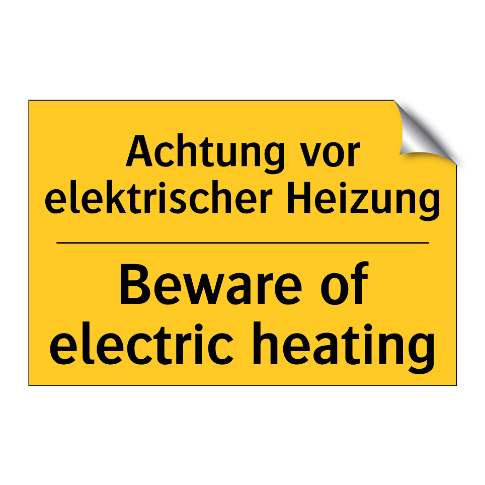 Zweisprachiges Warnschild mit deutschem Text Achtung vor elektrischer Heizung und englischem Text Beware of electric heating