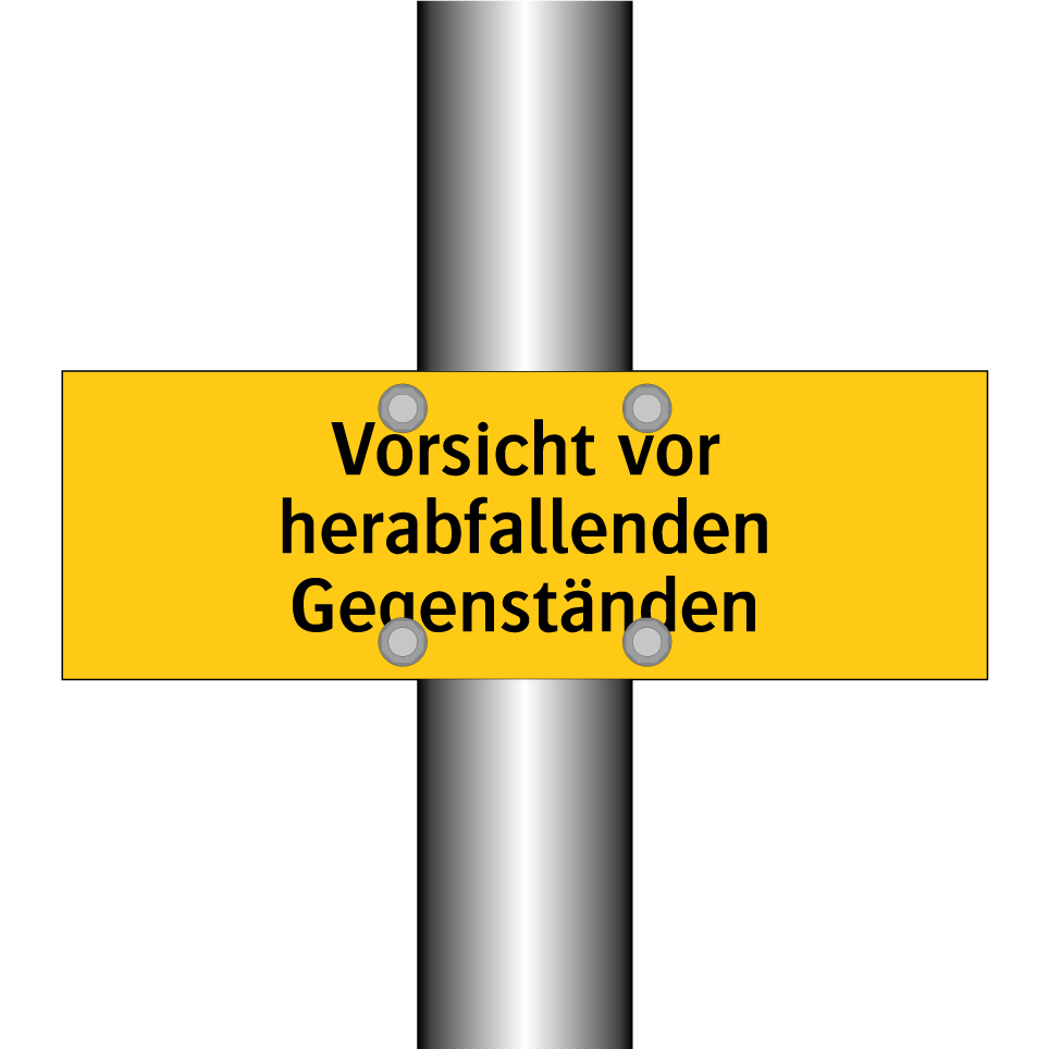 Warnschild mit dem Text Vorsicht vor herabfallenden Gegenständen