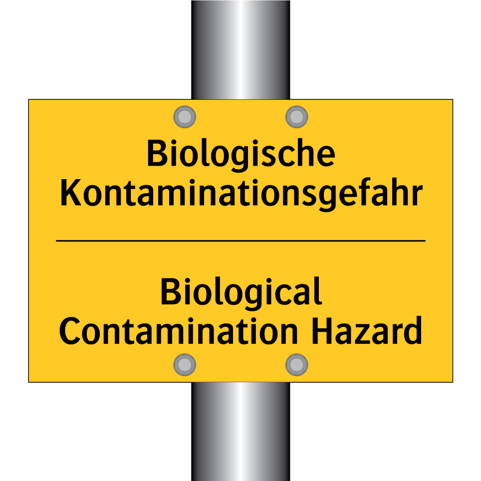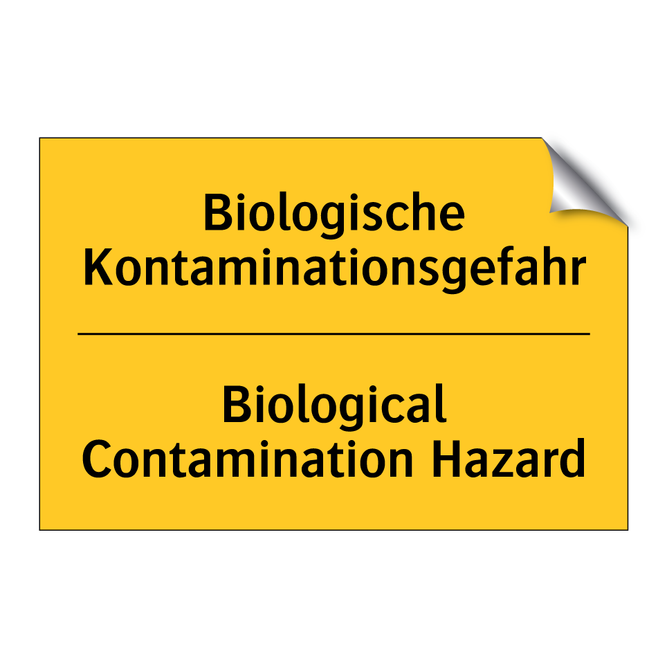 Zweisprachiges Warnschild mit deutschem Text Biologische Kontaminationsgefahr und englischem Text Biological Contamination Hazard