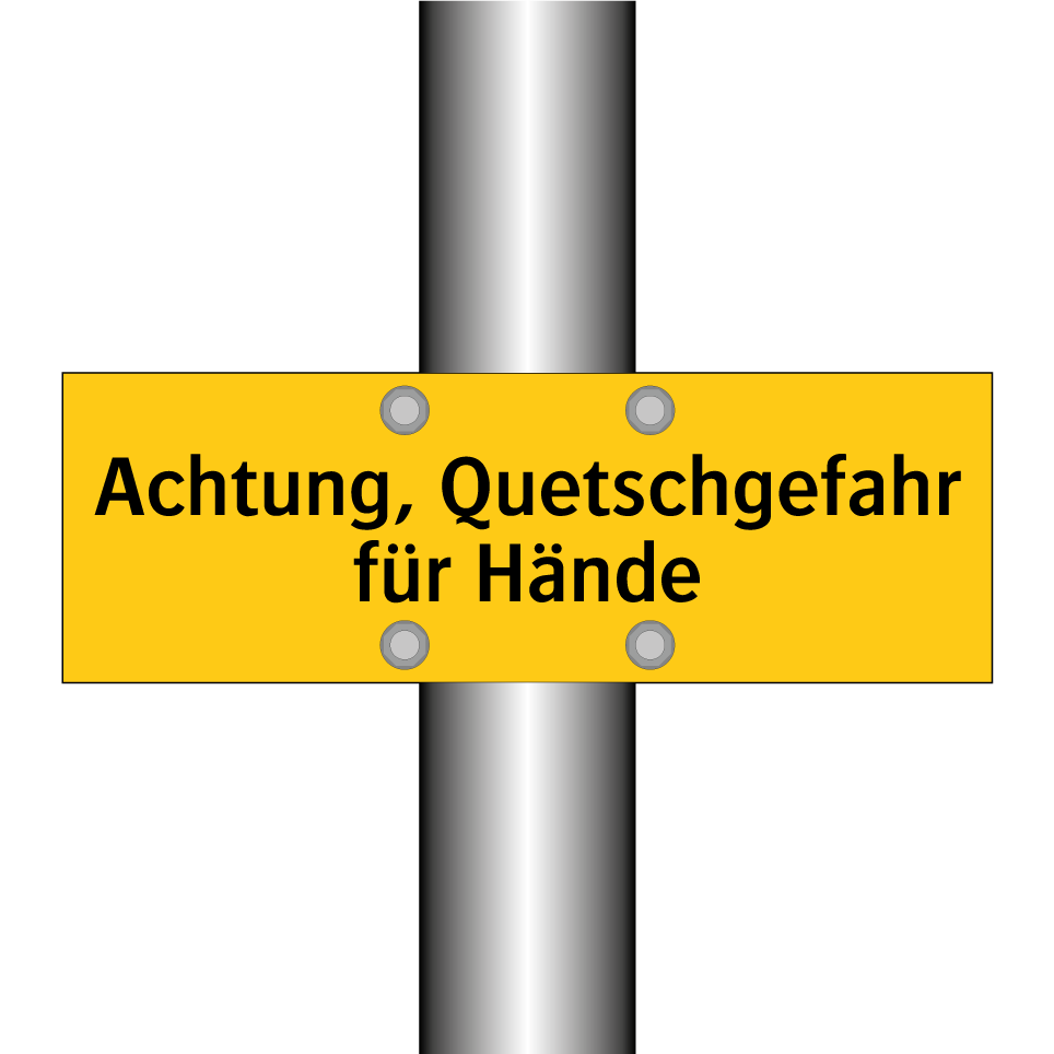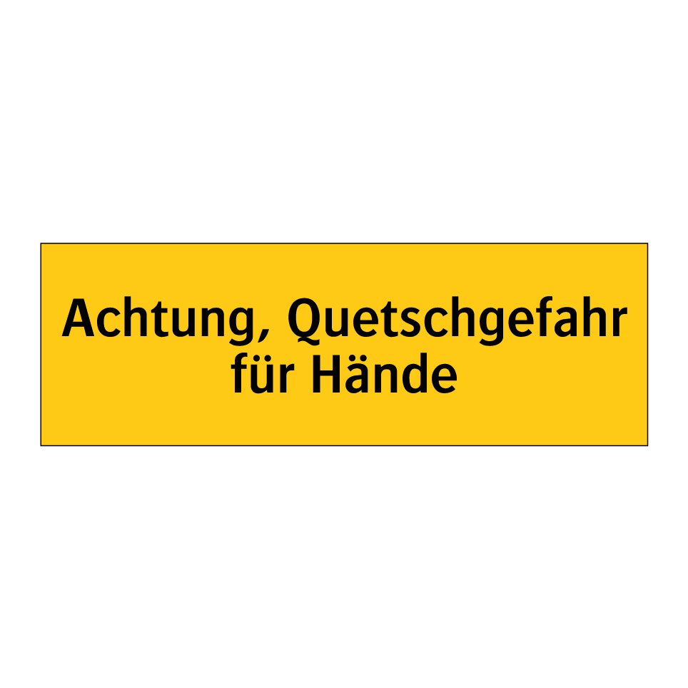 Warnschild mit dem Text Achtung, Quetschgefahr für Hände