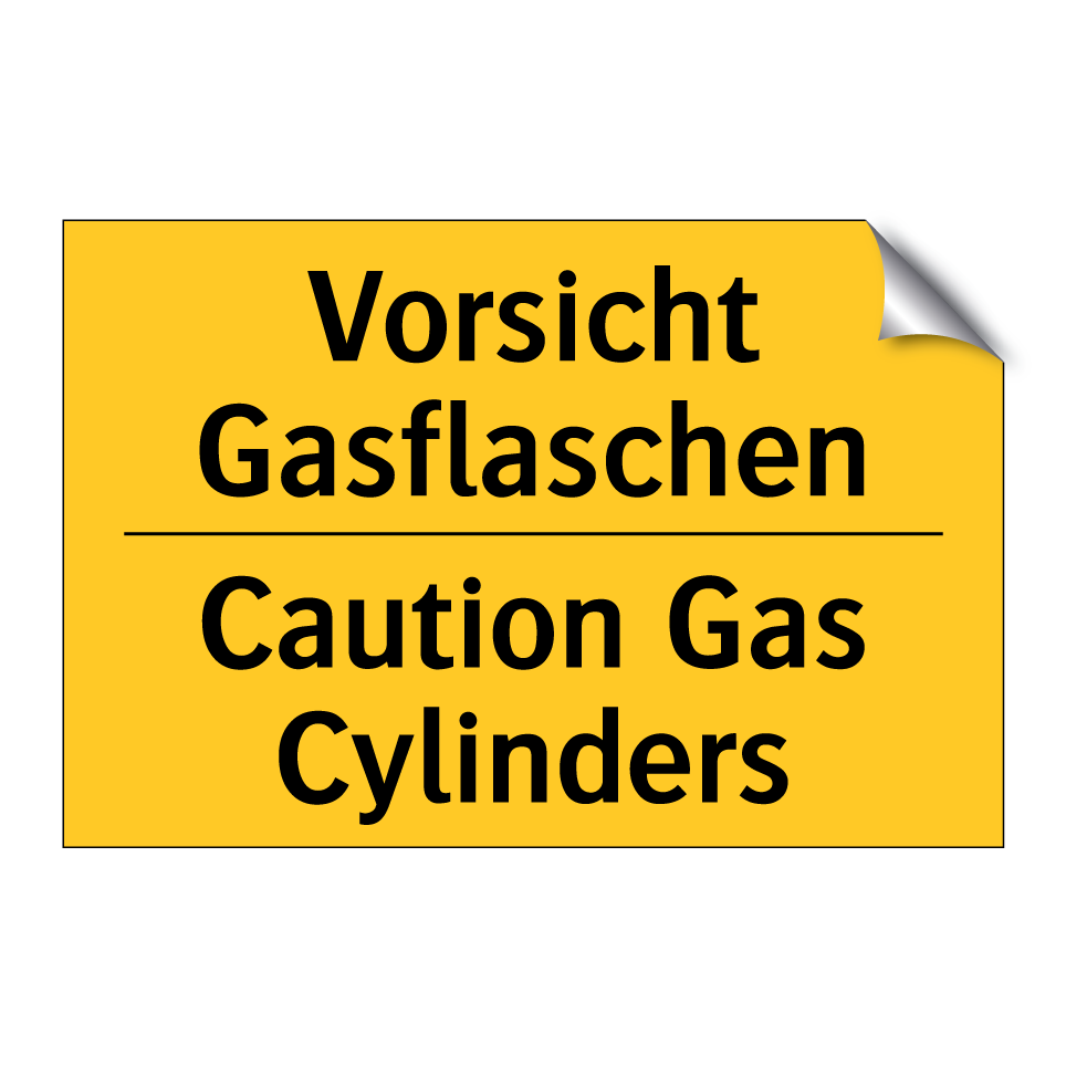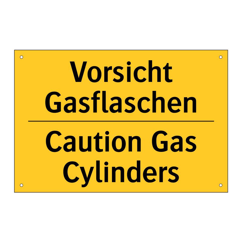 Zweisprachiges Warnschild mit deutschem Text Vorsicht Gasflaschen und englischem Text Caution Gas Cylinders