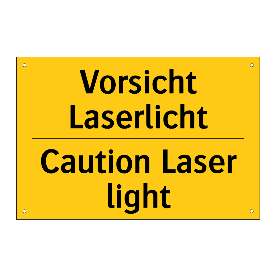 Zweisprachiges Warnschild mit deutschem Text Vorsicht Laserlicht und englischem Text Caution Laser light