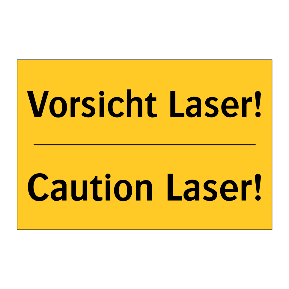 Zweisprachiges Warnschild mit deutschem Text Vorsicht Laser! und englischem Text Caution Laser!
