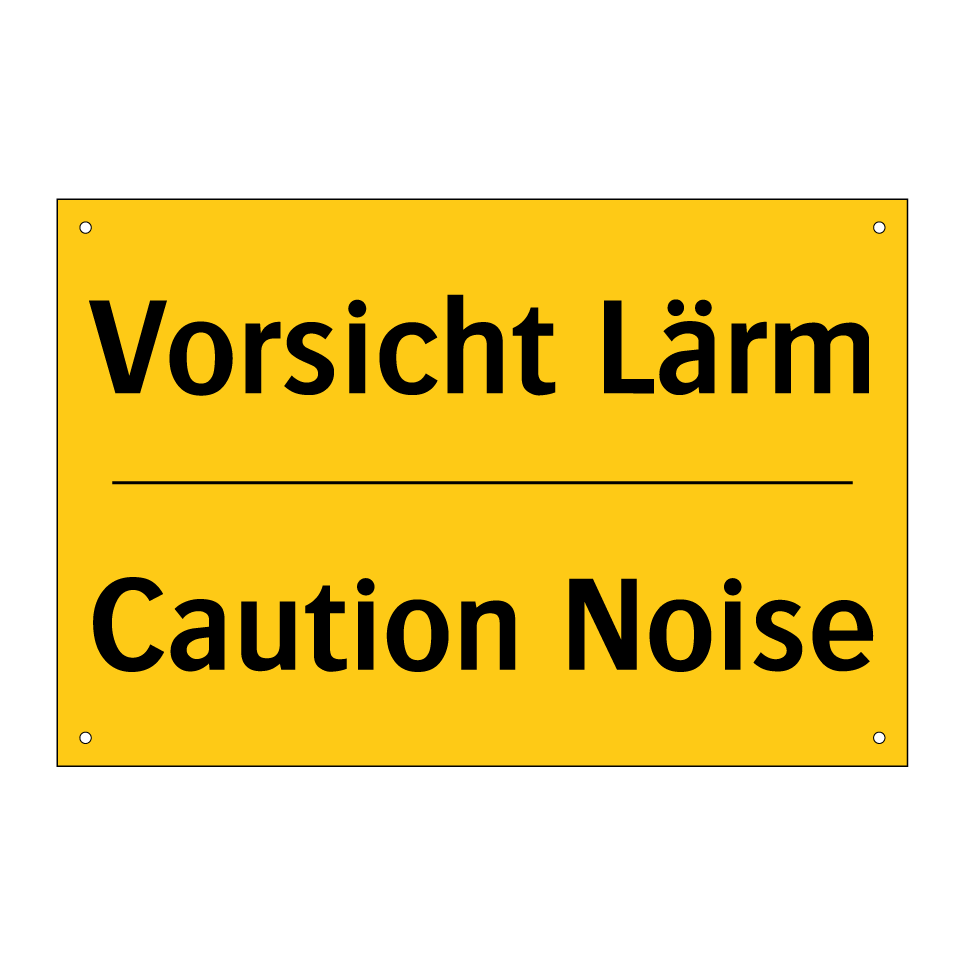 Zweisprachiges Warnschild mit deutschem Text Vorsicht Lärm und englischem Text Caution Noise