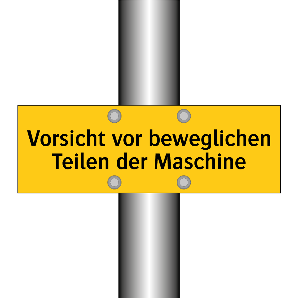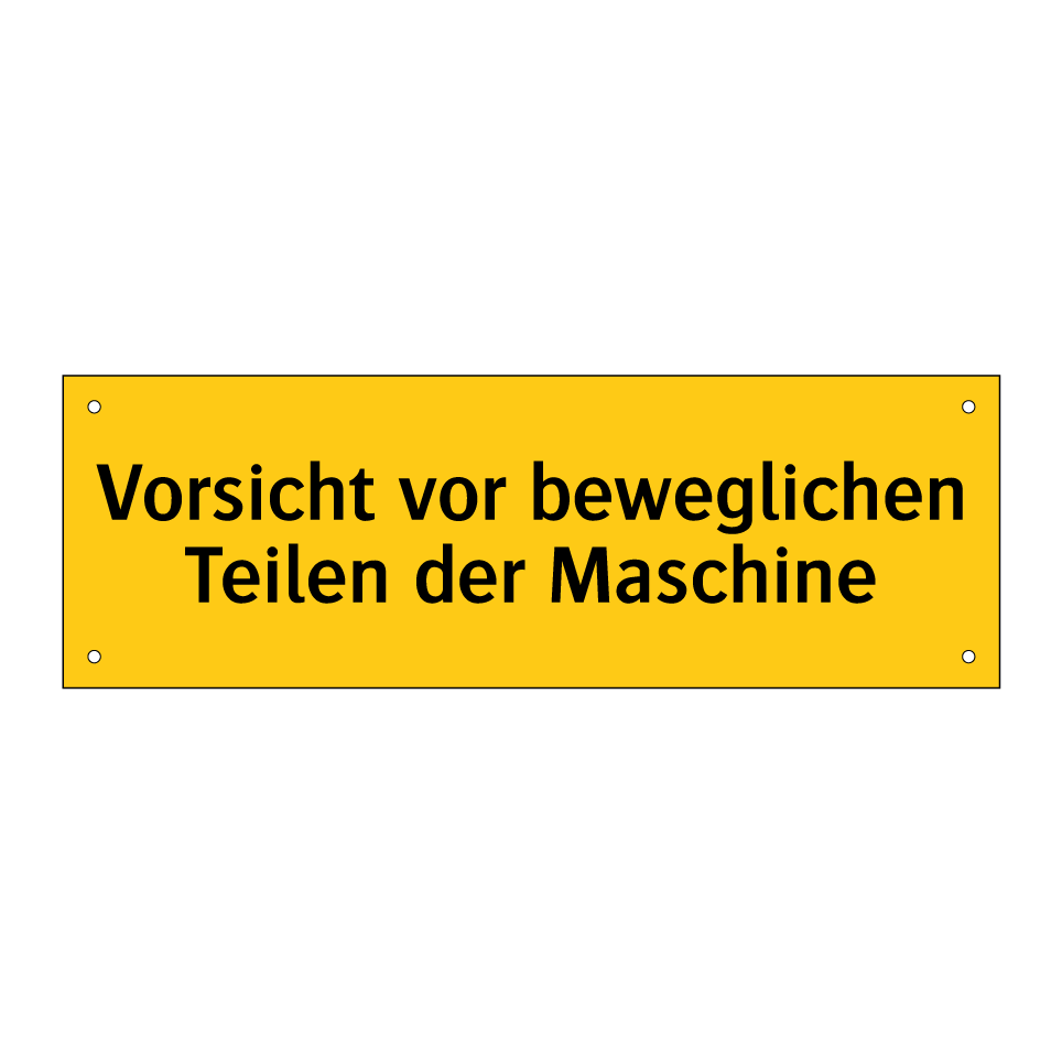 Warnschild mit dem Text Vorsicht vor beweglichen Teilen der Maschine