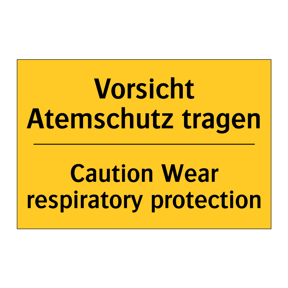 Zweisprachiges Warnschild mit deutschem Text Vorsicht Atemschutz tragen und englischem Text Caution Wear respiratory protection