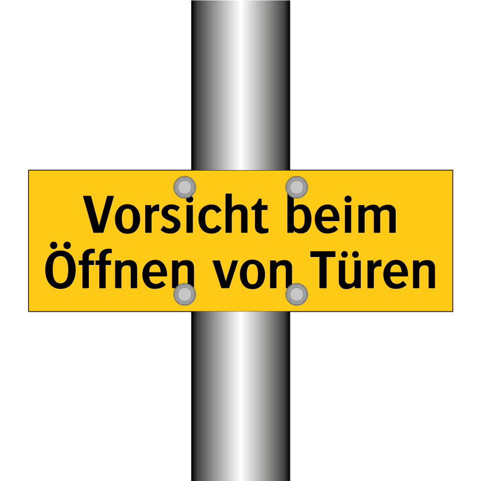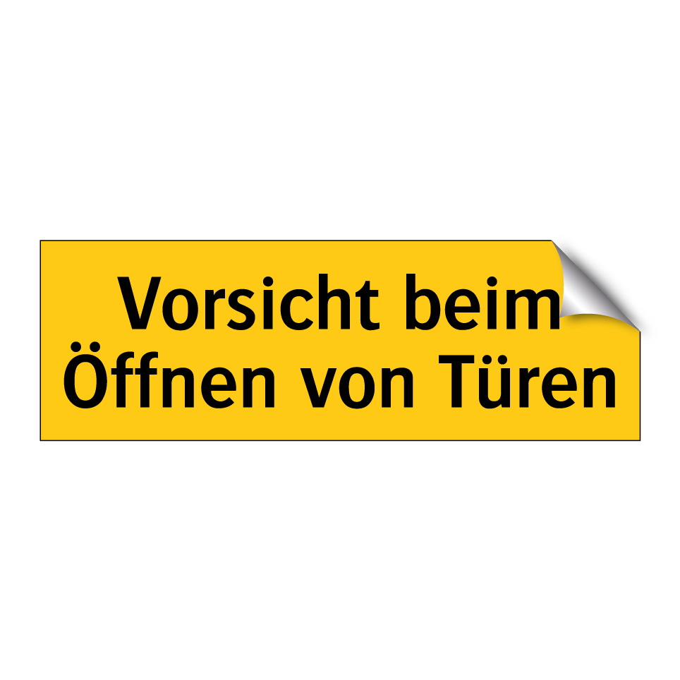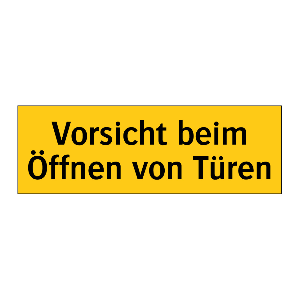 Warnschild mit dem Text Vorsicht beim Öffnen von Türen