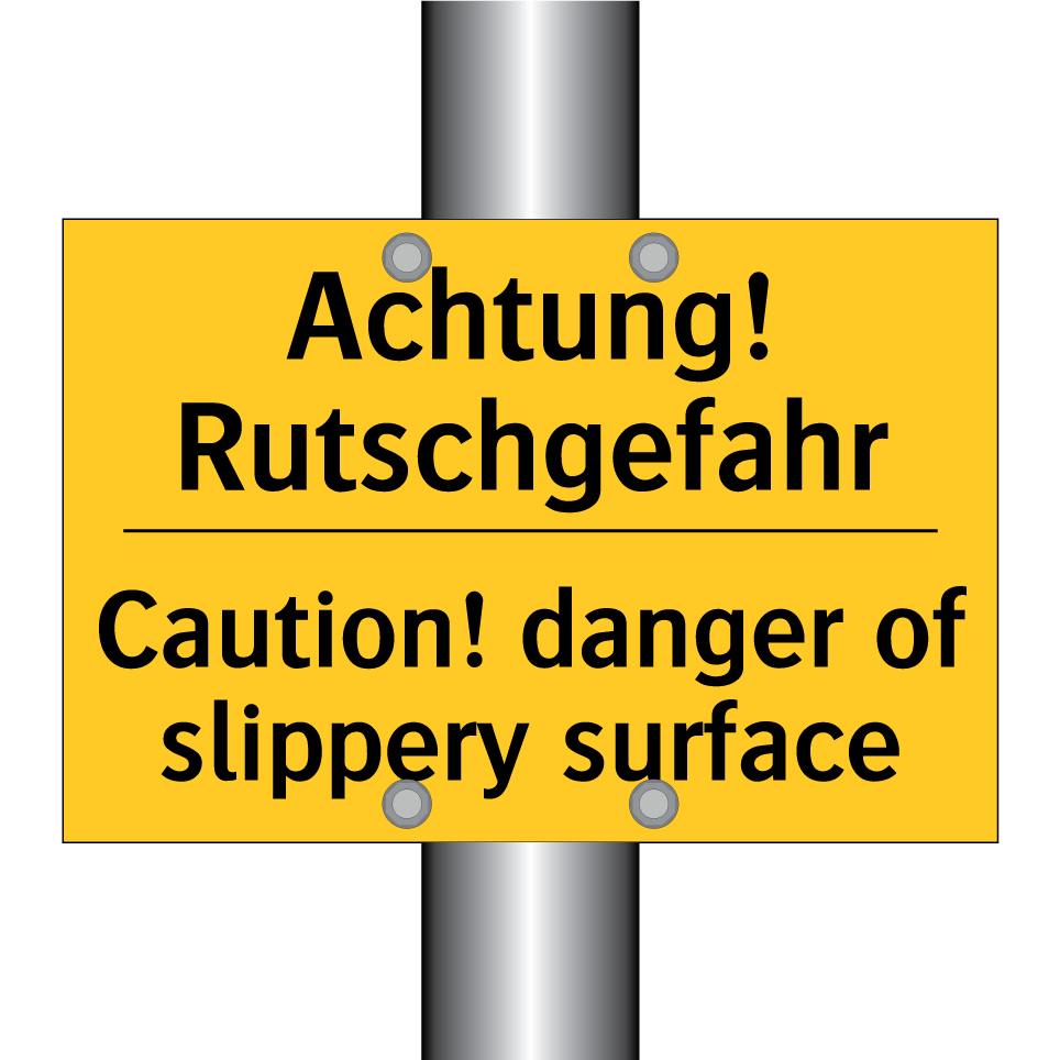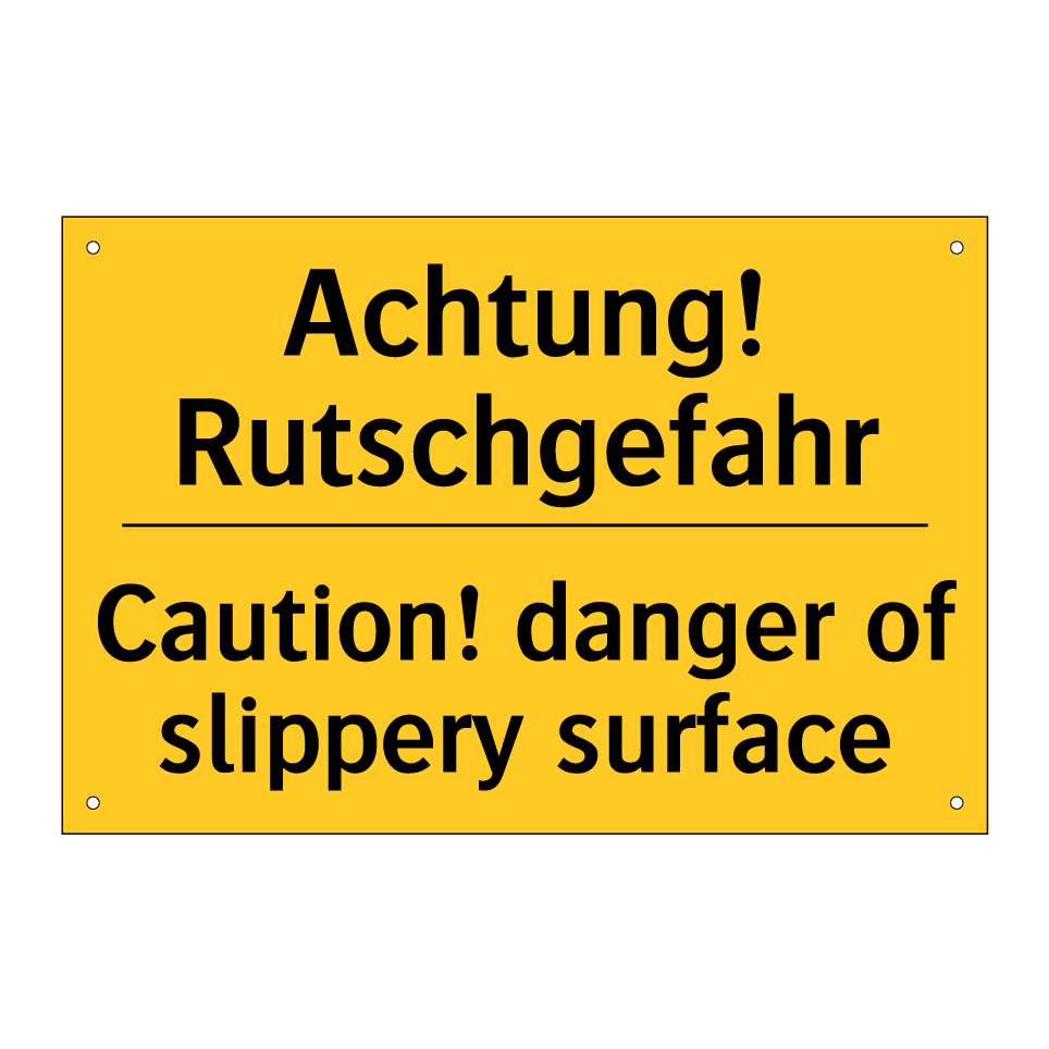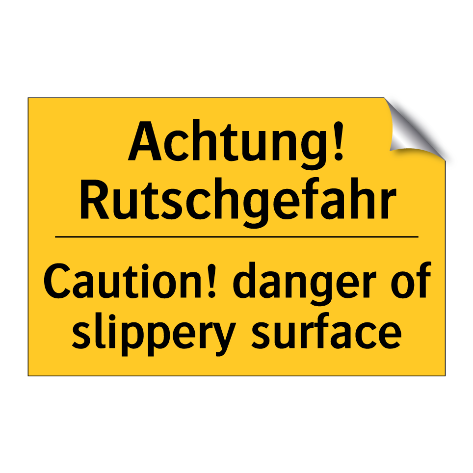 Zweisprachiges Warnschild mit deutschem Text Achtung! Rutschgefahr und englischem Text Caution! danger of slippery surface