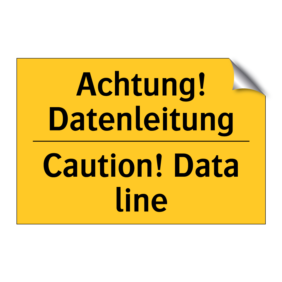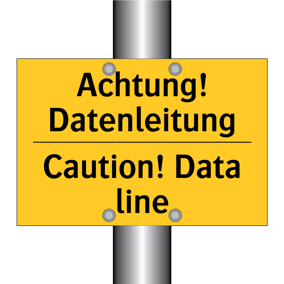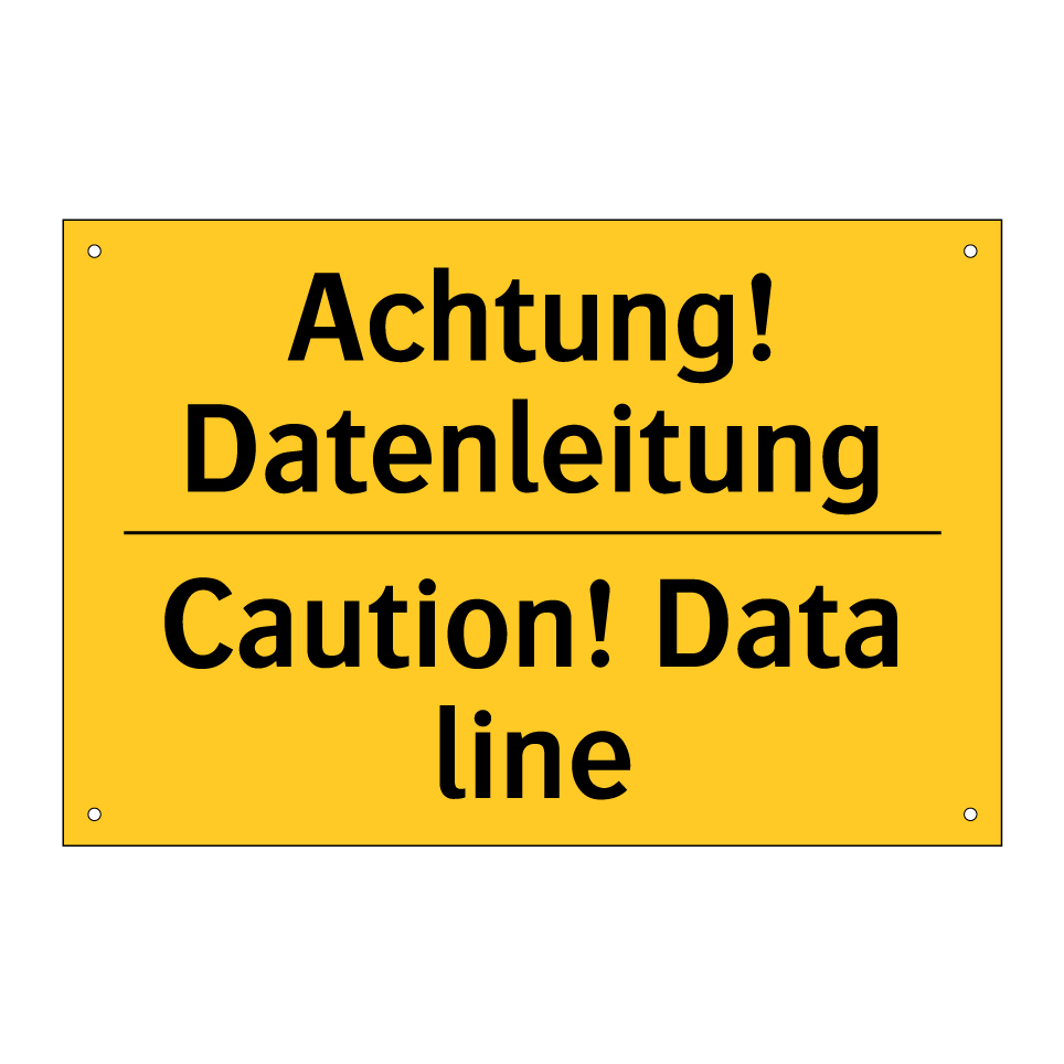 Zweisprachiges Warnschild mit deutschem Text Achtung! Datenleitung und englischem Text Caution! Data line