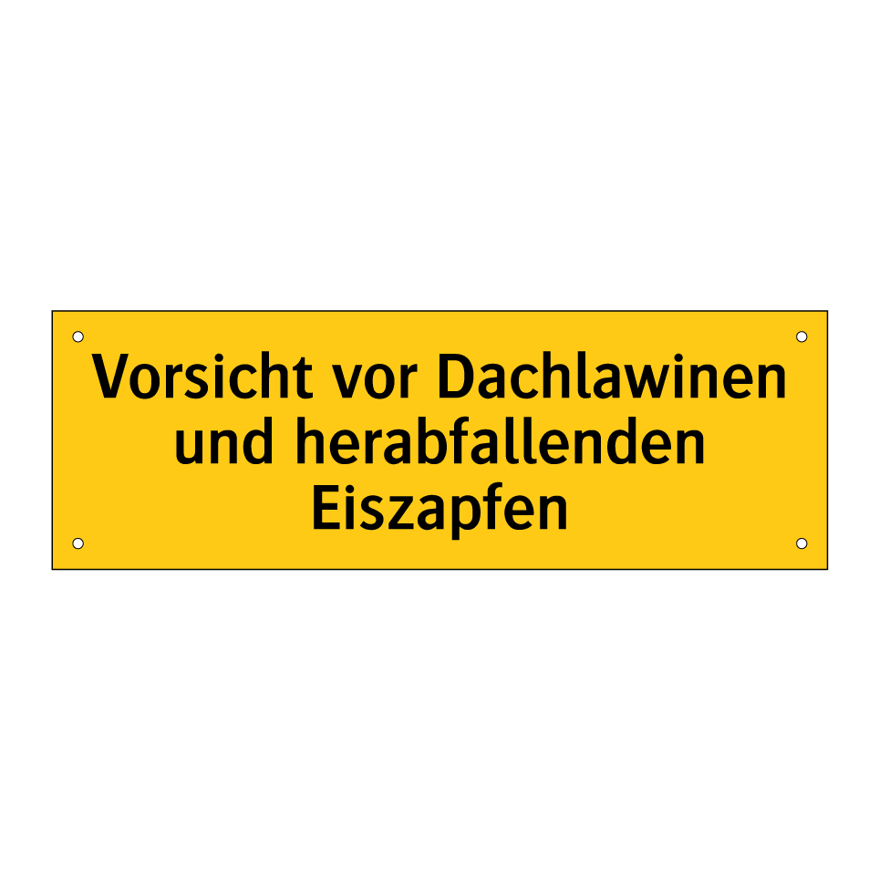 Warnschild mit dem Text Vorsicht vor Dachlawinen und herabfallenden Eiszapfen
