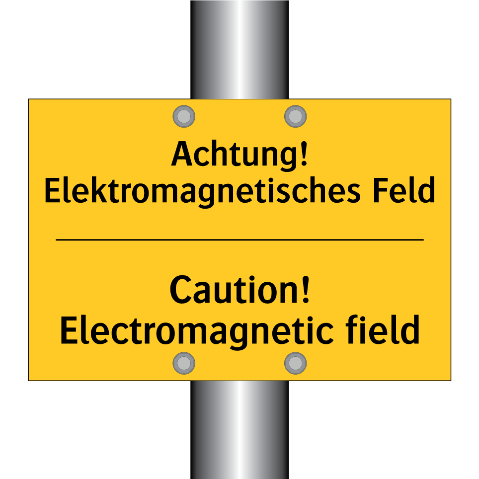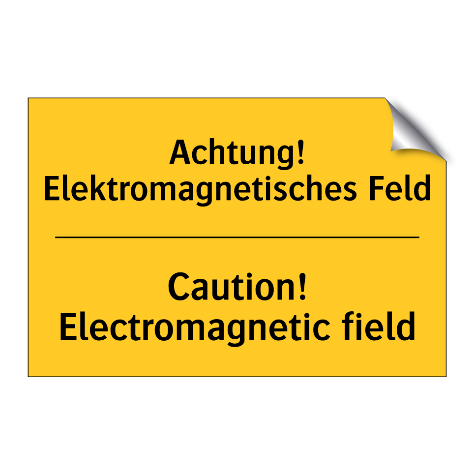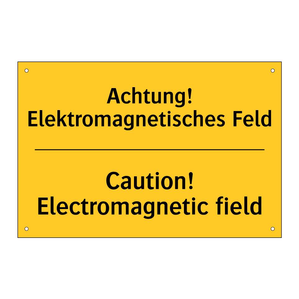 Zweisprachiges Warnschild mit deutschem Text Achtung! Elektromagnetisches Feld und englischem Text Caution! Electromagnetic field