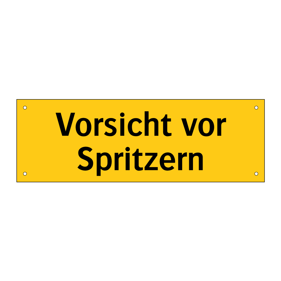 Warnschild mit dem Text Vorsicht vor Spritzern