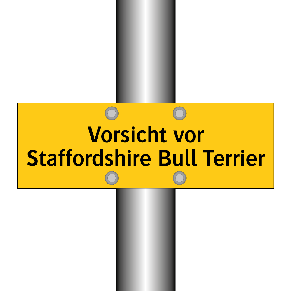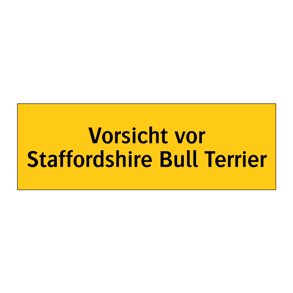 Warnschild mit dem Text Vorsicht vor Staffordshire Bull Terrier