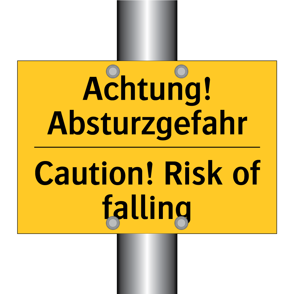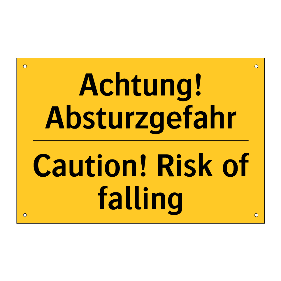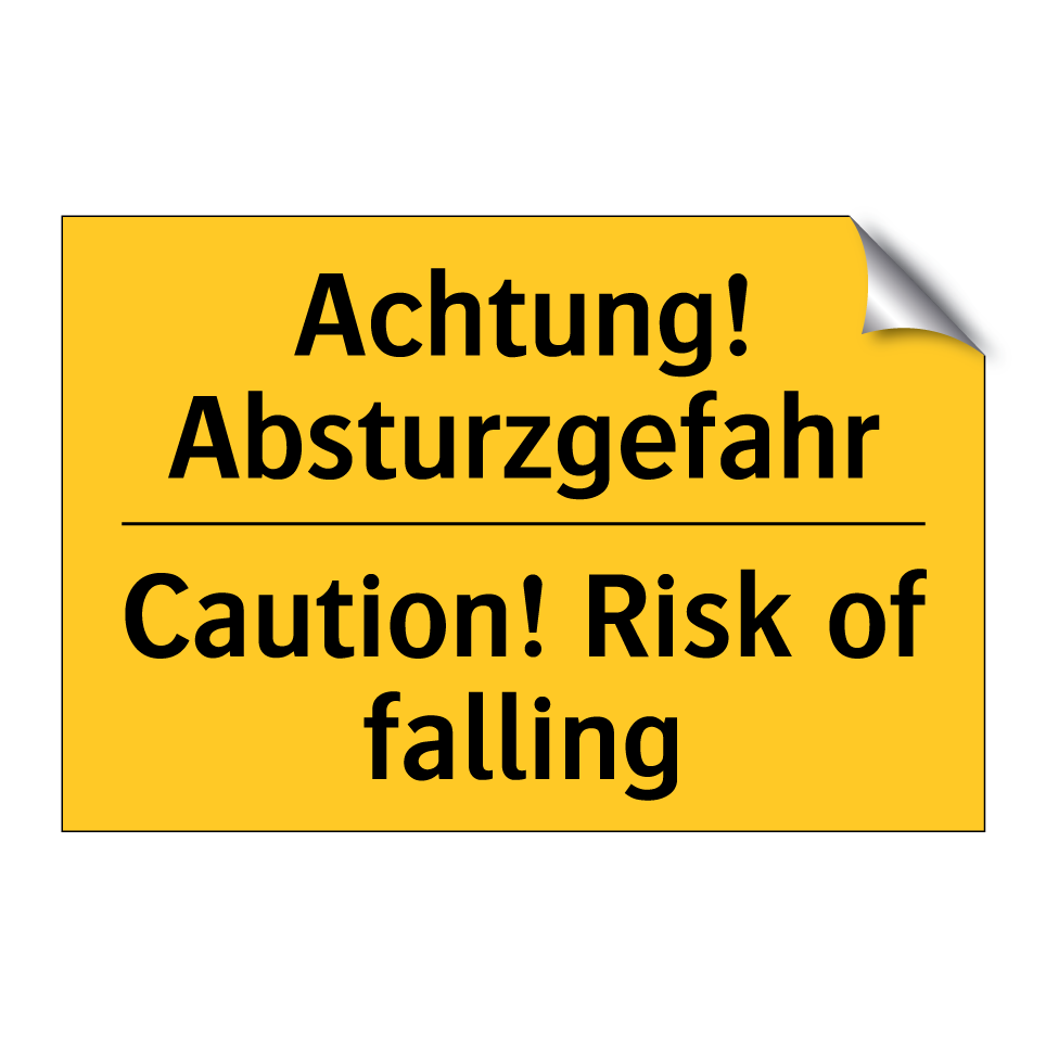Zweisprachiges Warnschild mit deutschem Text Achtung! Absturzgefahr und englischem Text Caution! Risk of falling