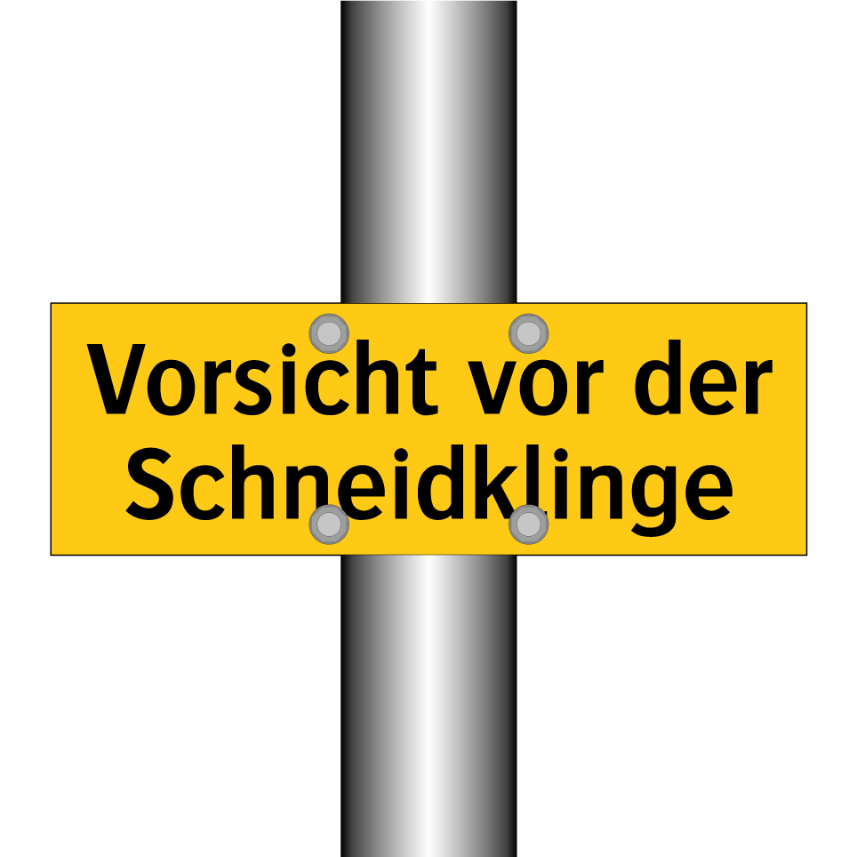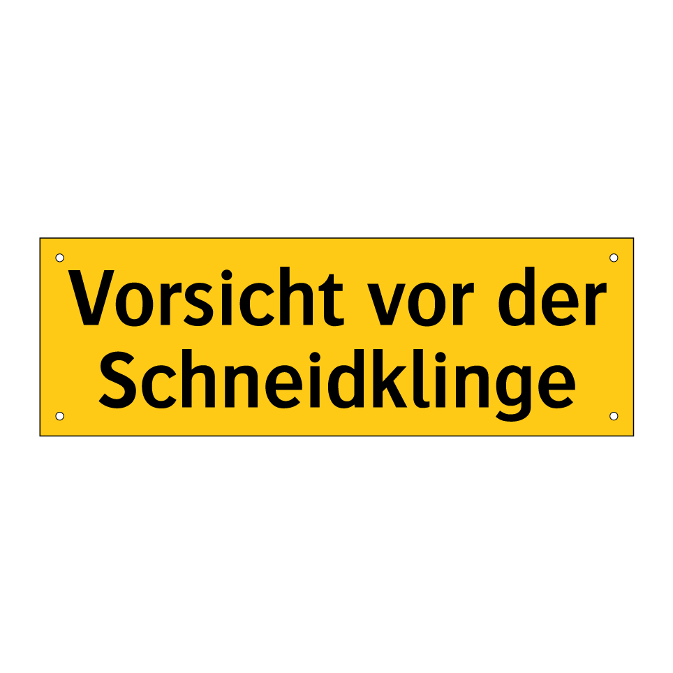 Warnschild mit dem Text Vorsicht vor der Schneidklinge
