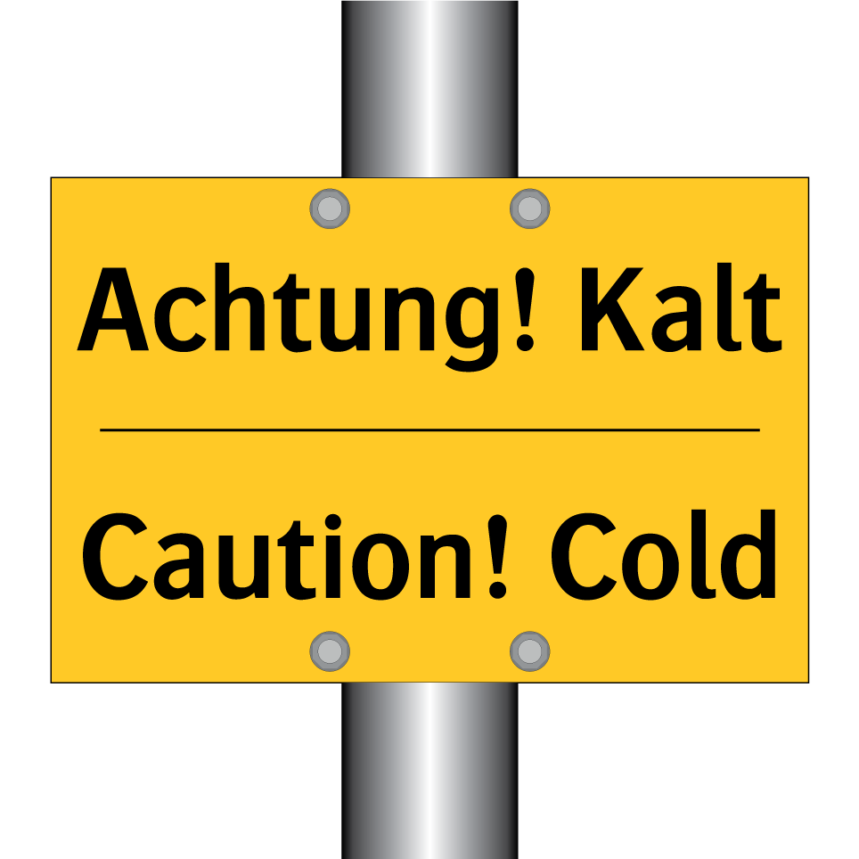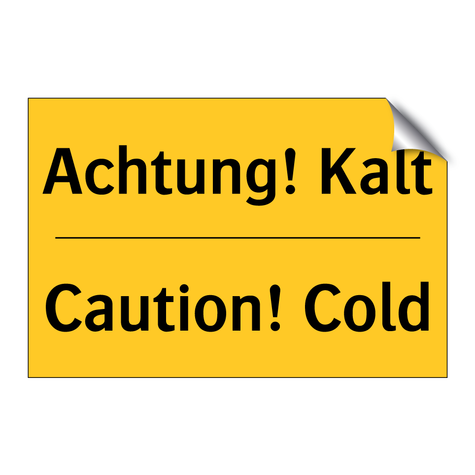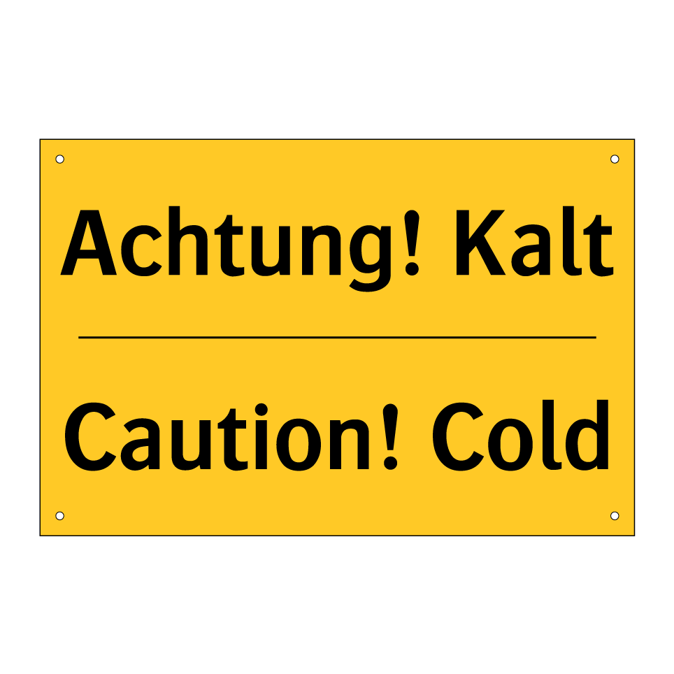 Zweisprachiges Warnschild mit deutschem Text Achtung! Kalt und englischem Text Caution! Cold