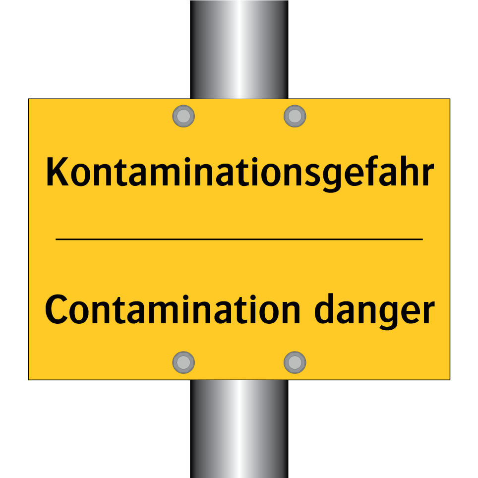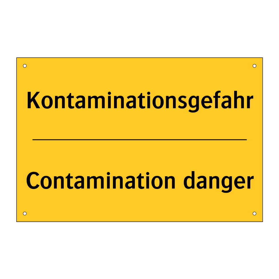 Zweisprachiges Warnschild mit deutschem Text Kontaminationsgefahr und englischem Text Contamination danger