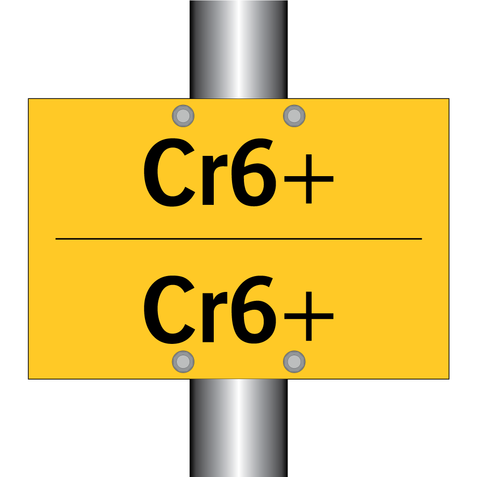 Zweisprachiges Warnschild mit deutschem Text Cr6+ und englischem Text Cr6+