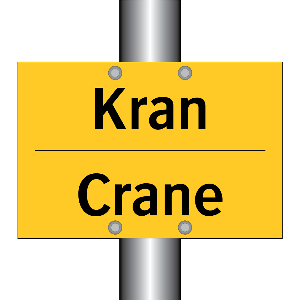 Zweisprachiges Warnschild mit deutschem Text Kran und englischem Text Crane
