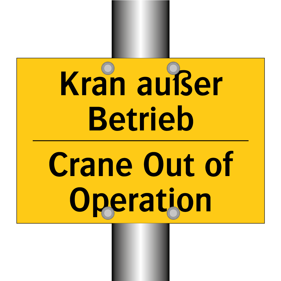 Diese zweisprachige Warnschild mit gelbem Hintergrund und schwarzem Text ist ideal für den Einsatz in Bereichen, in denen Kräne außer Betrieb sind. Die Beschriftung auf Deutsch und Englisch sorgt dafür, dass sowohl lokale als auch internationale Mitarbeiter die wichtige Sicherheitsinformation verstehen. Diese Warnschilder sind besonders nützlich in industriellen Umgebungen wie Baustellen, Lagerhallen oder Fabriken, wo Kräne häufig verwendet werden. Durch die klare und auffällige Gestaltung wird die Aufmerksamkeit der Mitarbeiter effektiv auf potenzielle Gefahren gelenkt, was zur Vermeidung von Unfällen beiträgt. Platzieren Sie das Schild an gut sichtbaren Stellen, um maximale Wirkung zu erzielen.