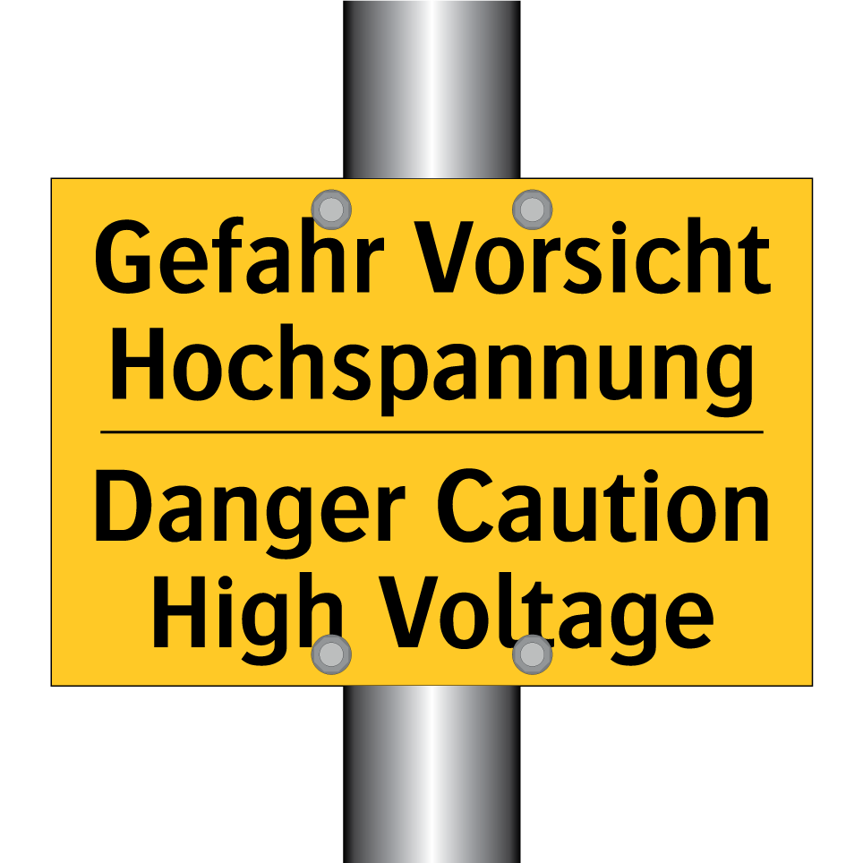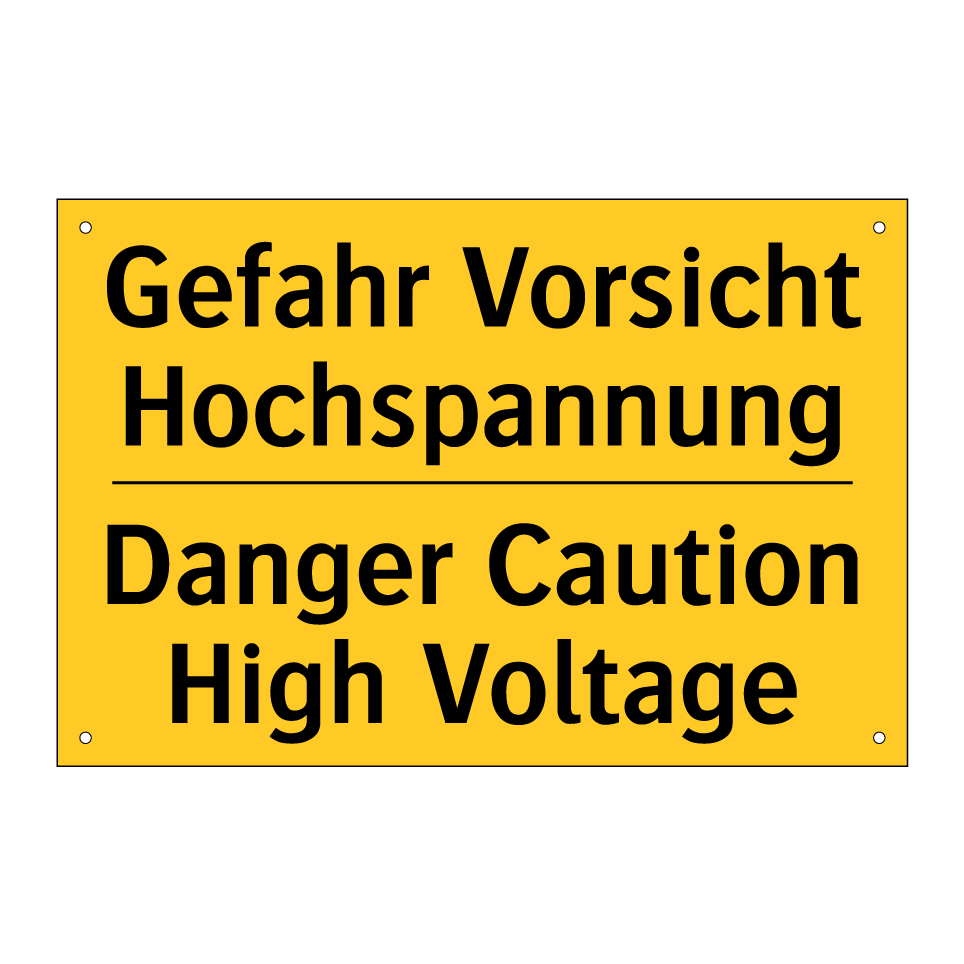 Zweisprachiges Warnschild mit deutschem Text Gefahr Vorsicht Hochspannung und englischem Text Danger Caution High Voltage