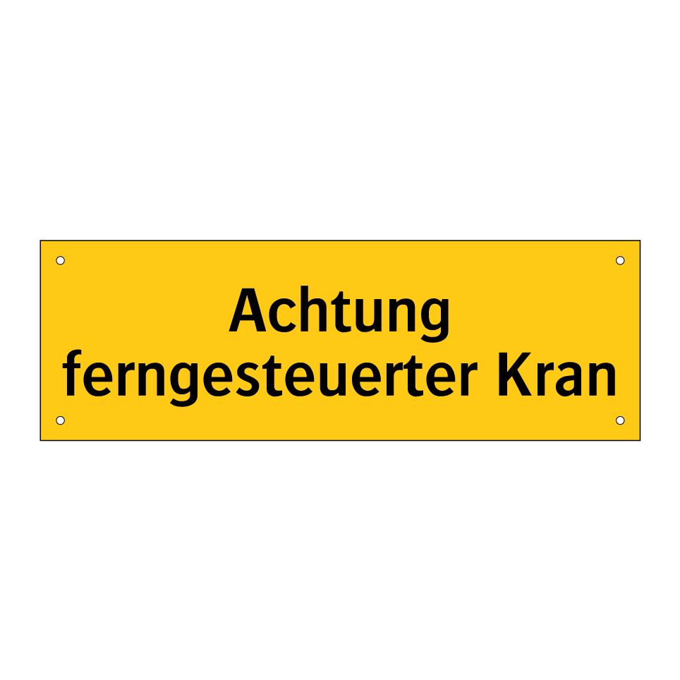 Warnschild mit dem Text Achtung ferngesteuerter Kran