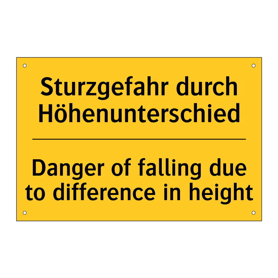 Zweisprachiges Warnschild mit deutschem Text Sturzgefahr durch Höhenunterschied und englischem Text Danger of falling due to difference in height