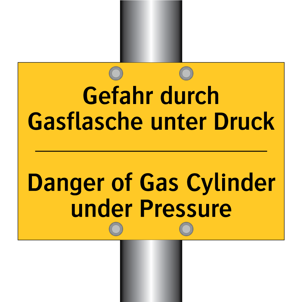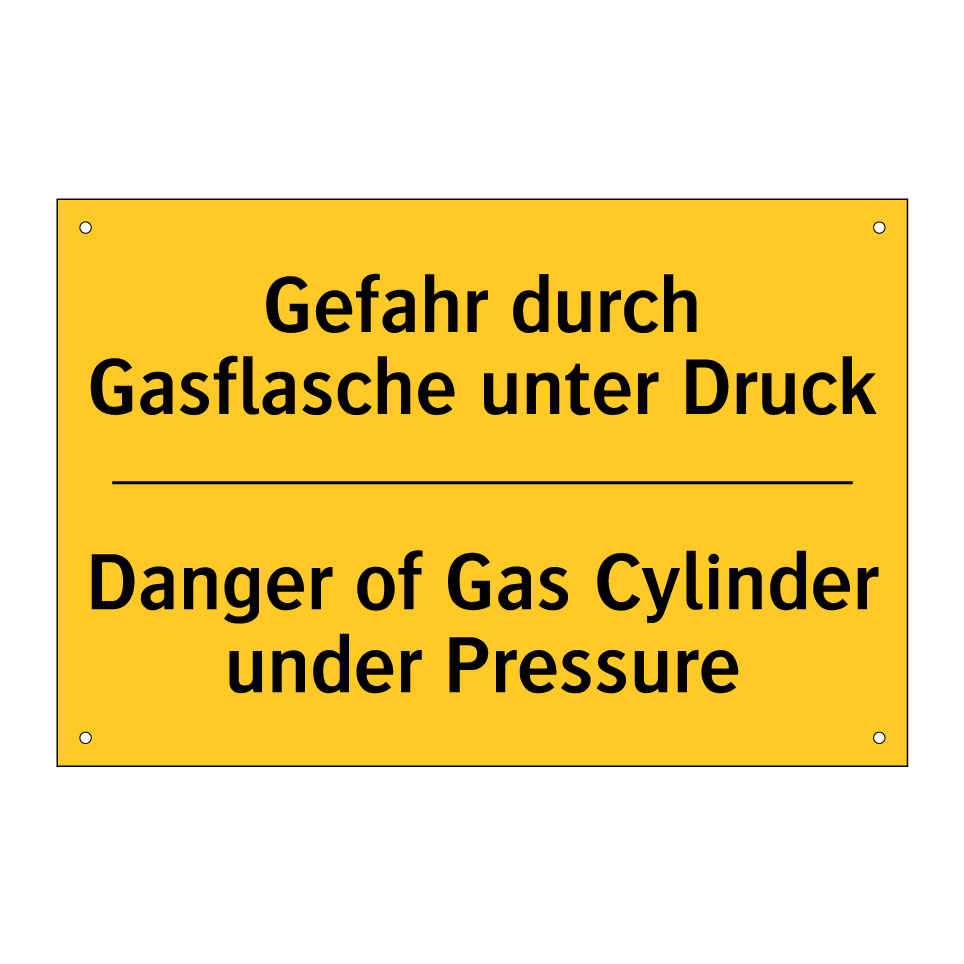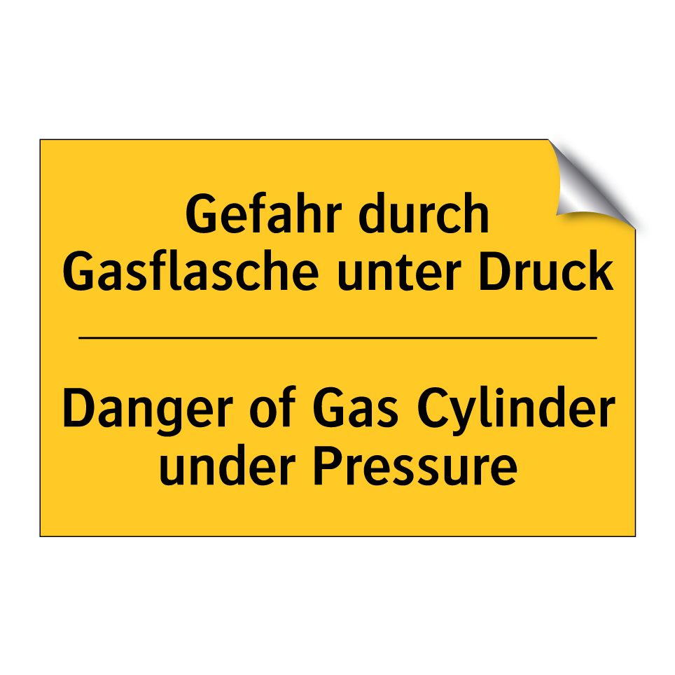 Zweisprachiges Warnschild mit deutschem Text Gefahr durch Gasflasche unter Druck und englischem Text Danger of Gas Cylinder under Pressure