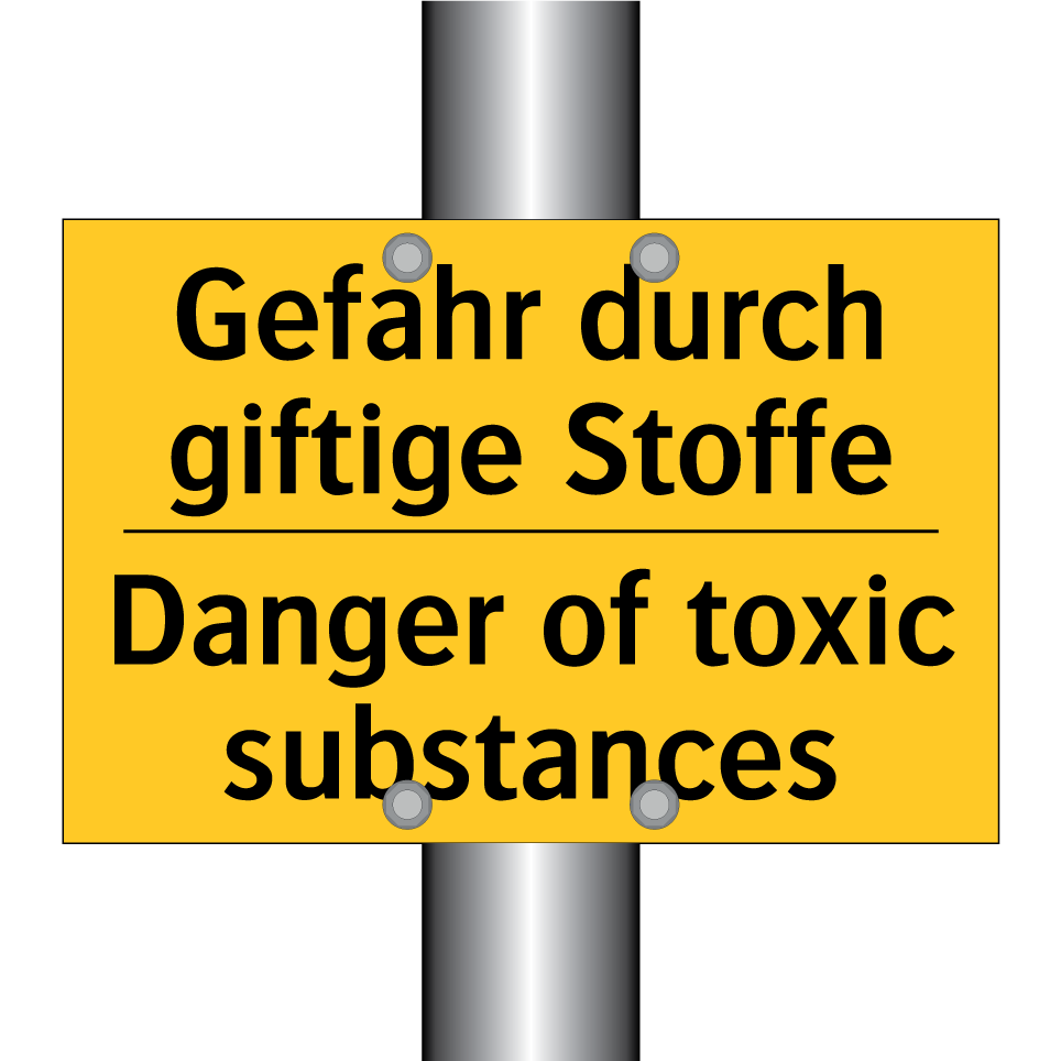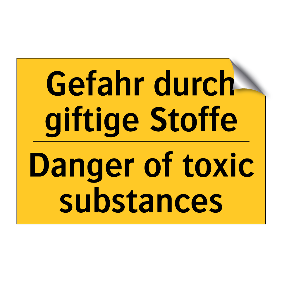 Zweisprachiges Warnschild mit deutschem Text Gefahr durch giftige Stoffe und englischem Text Danger of toxic substances