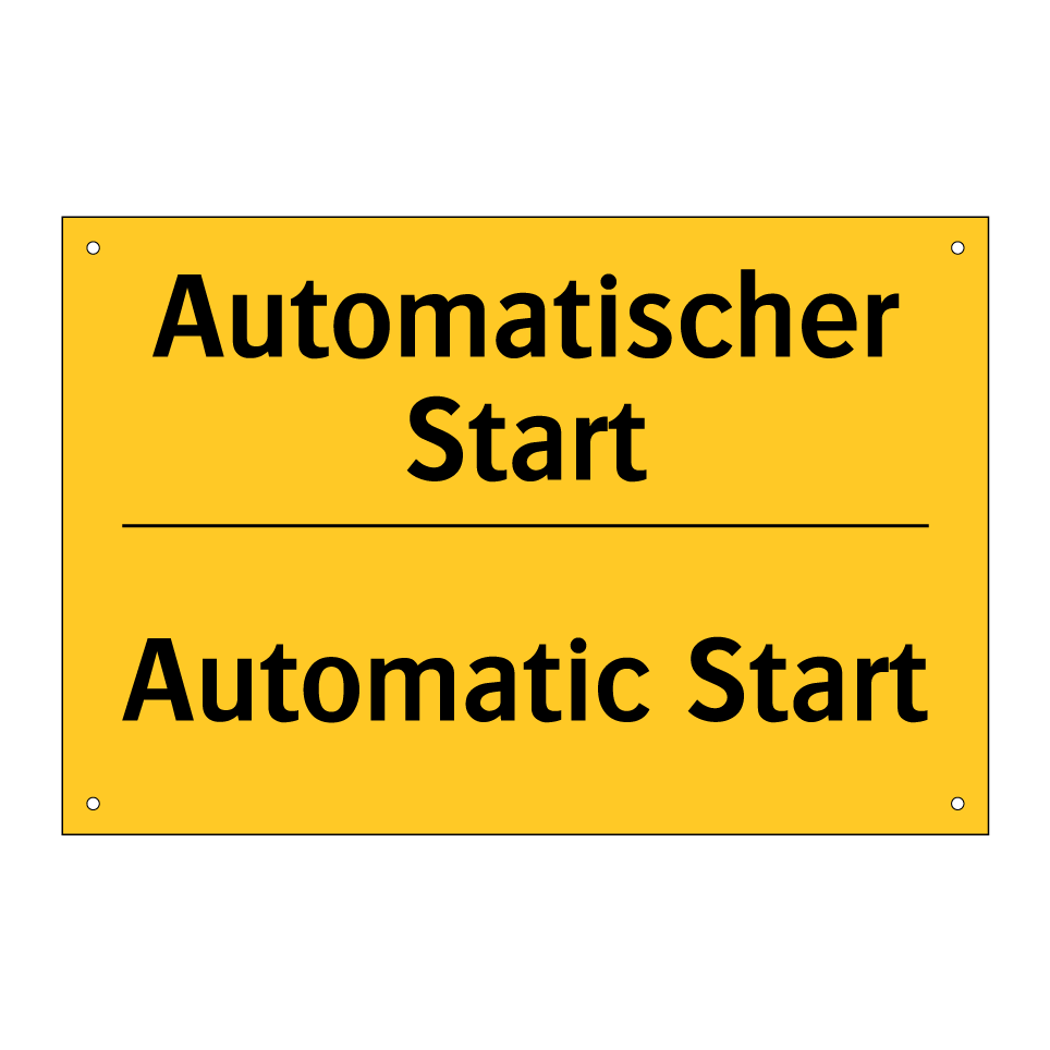 Zweisprachiges Warnschild mit deutschem Text Automatischer Start und englischem Text Automatic Start