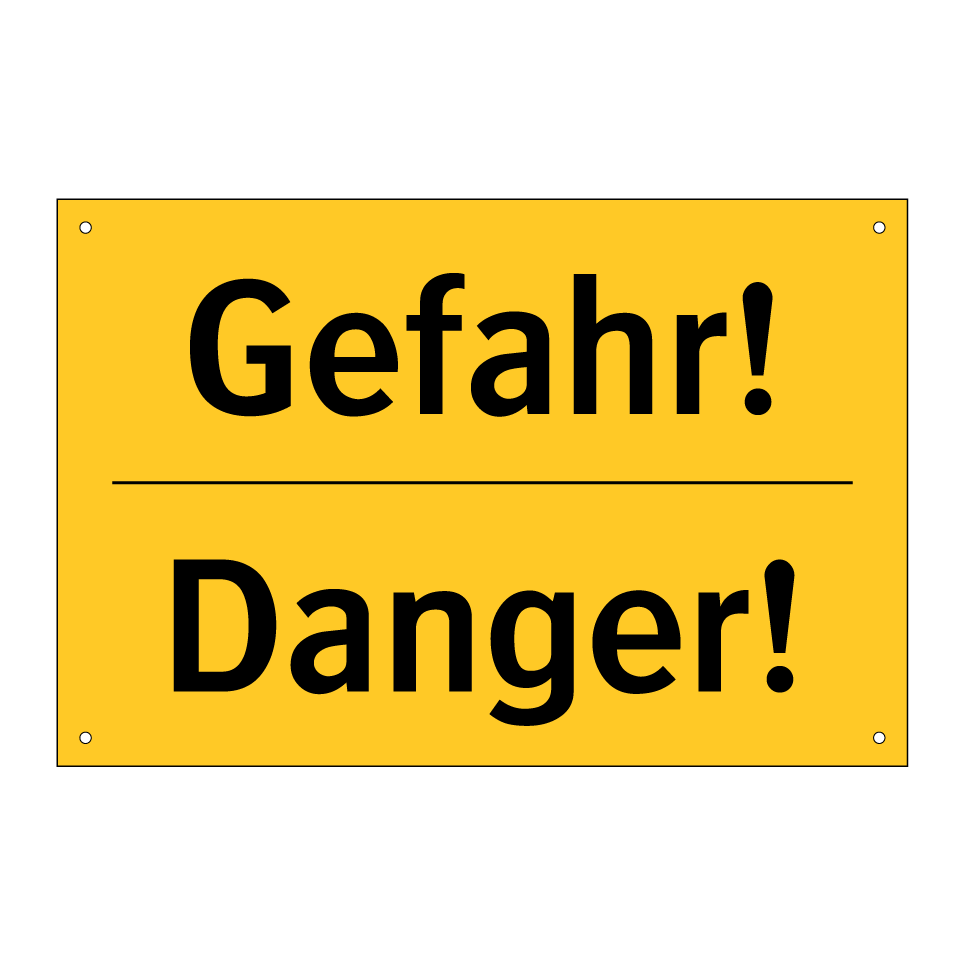 Zweisprachiges Warnschild mit deutschem Text Gefahr! und englischem Text Danger!