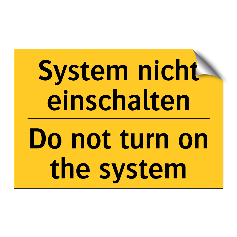 Zweisprachiges Warnschild mit deutschem Text System nicht einschalten und englischem Text Do not turn on the system