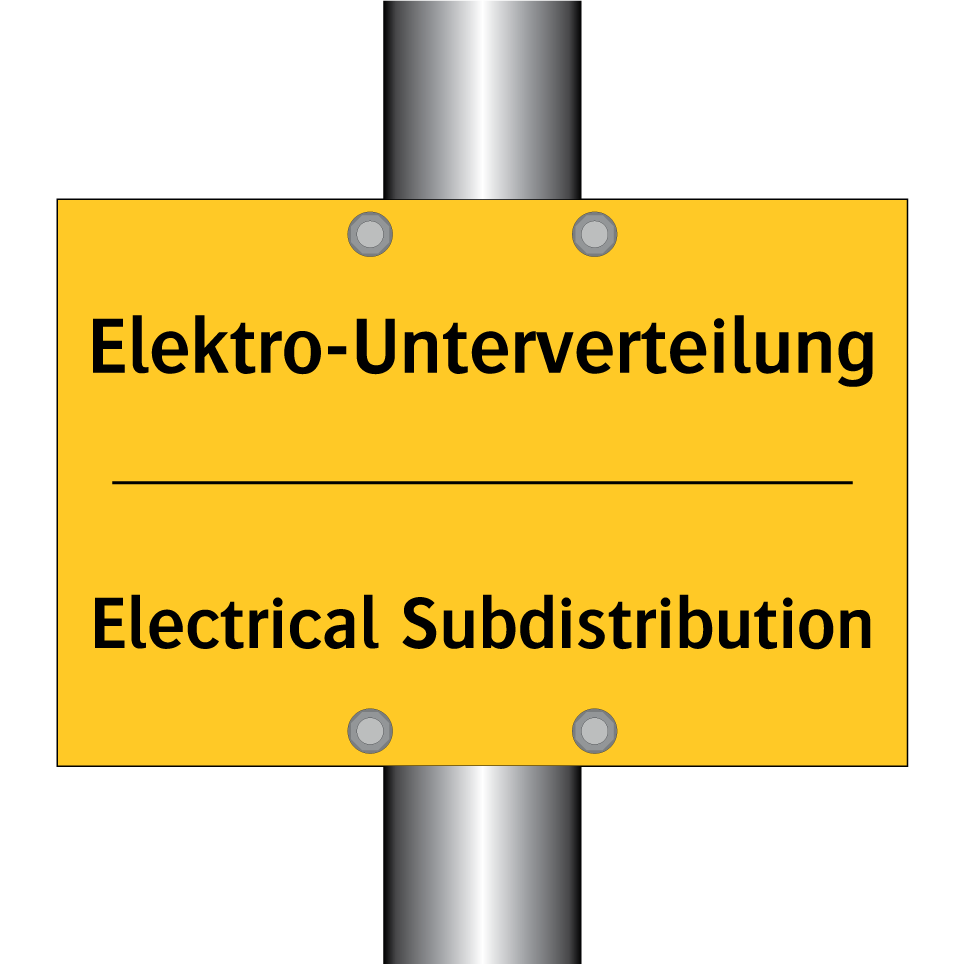 Zweisprachiges Warnschild mit deutschem Text Elektro-Unterverteilung und englischem Text Electrical Subdistribution