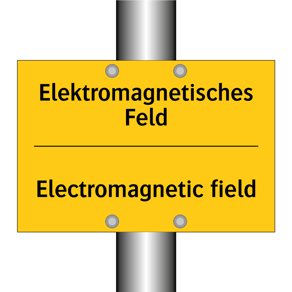 Zweisprachiges Warnschild mit deutschem Text Elektromagnetisches Feld und englischem Text Electromagnetic field