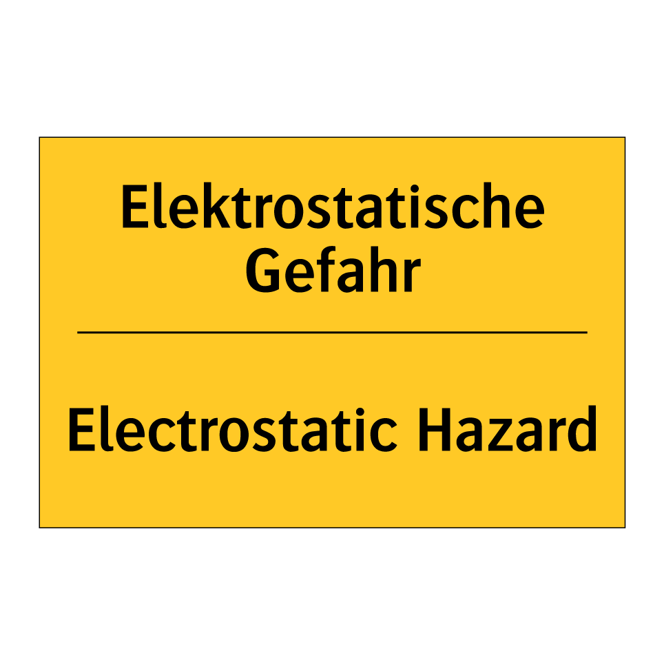 Zweisprachiges Warnschild mit deutschem Text Elektrostatische Gefahr und englischem Text Electrostatic Hazard