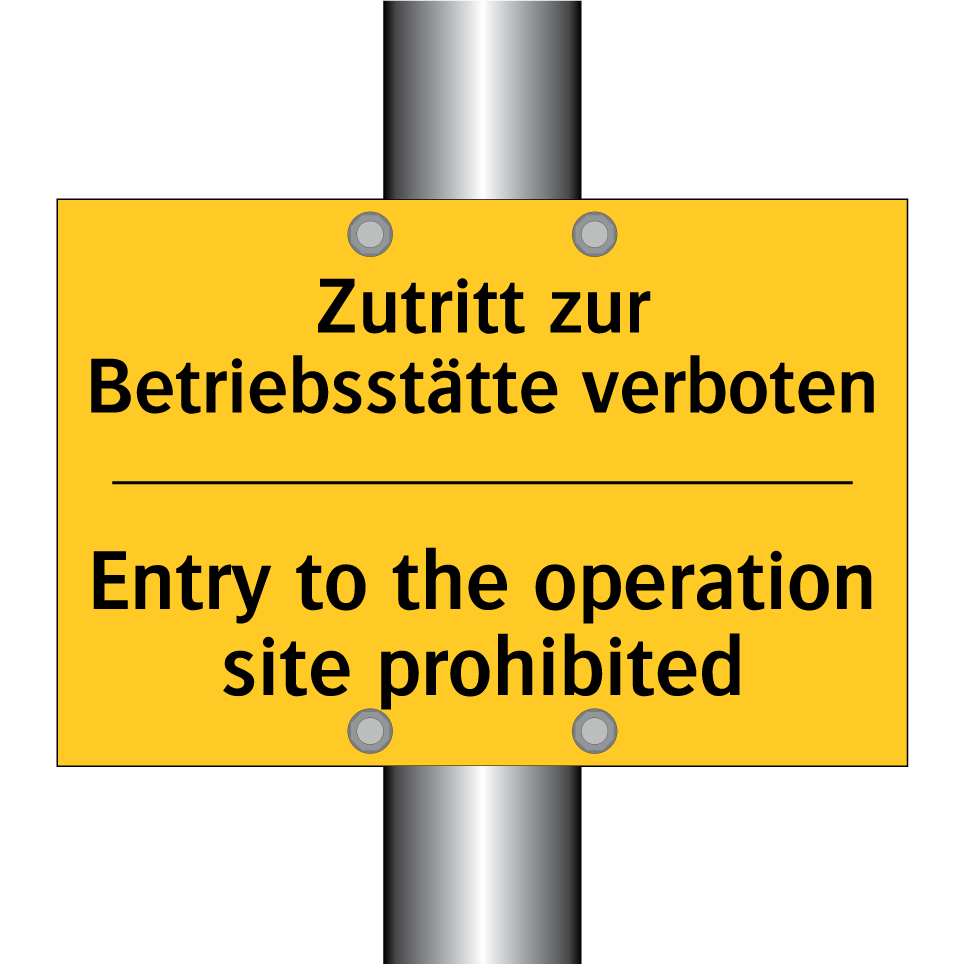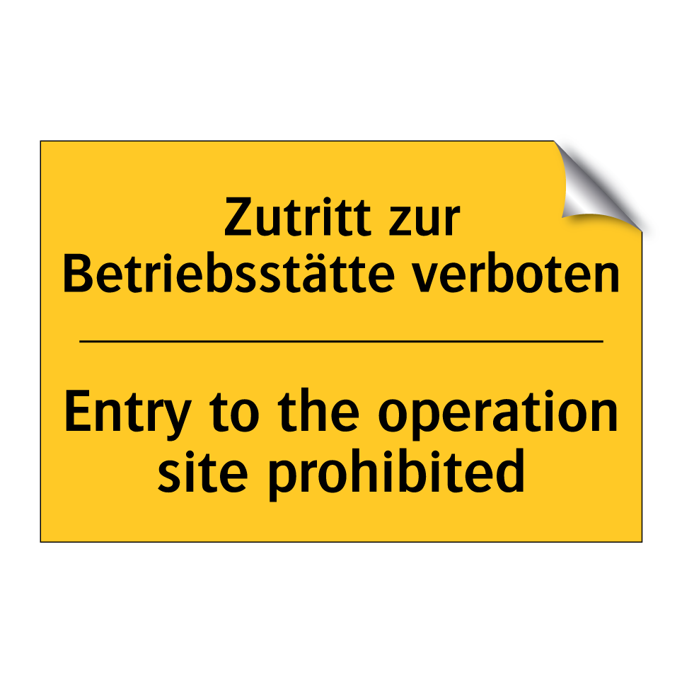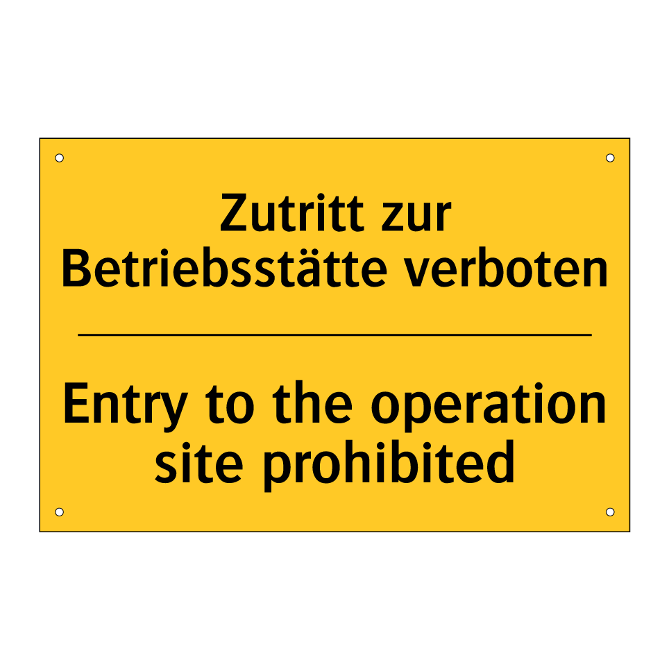 Zweisprachiges Warnschild mit deutschem Text Zutritt zur Betriebsstätte verboten und englischem Text Entry to the operation site prohibited