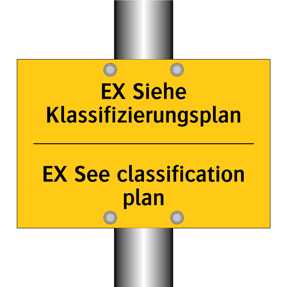 Zweisprachiges Warnschild mit deutschem Text EX Siehe Klassifizierungsplan und englischem Text EX See classification plan