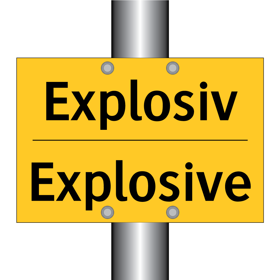 Zweisprachiges Warnschild mit deutschem Text Explosiv und englischem Text Explosive