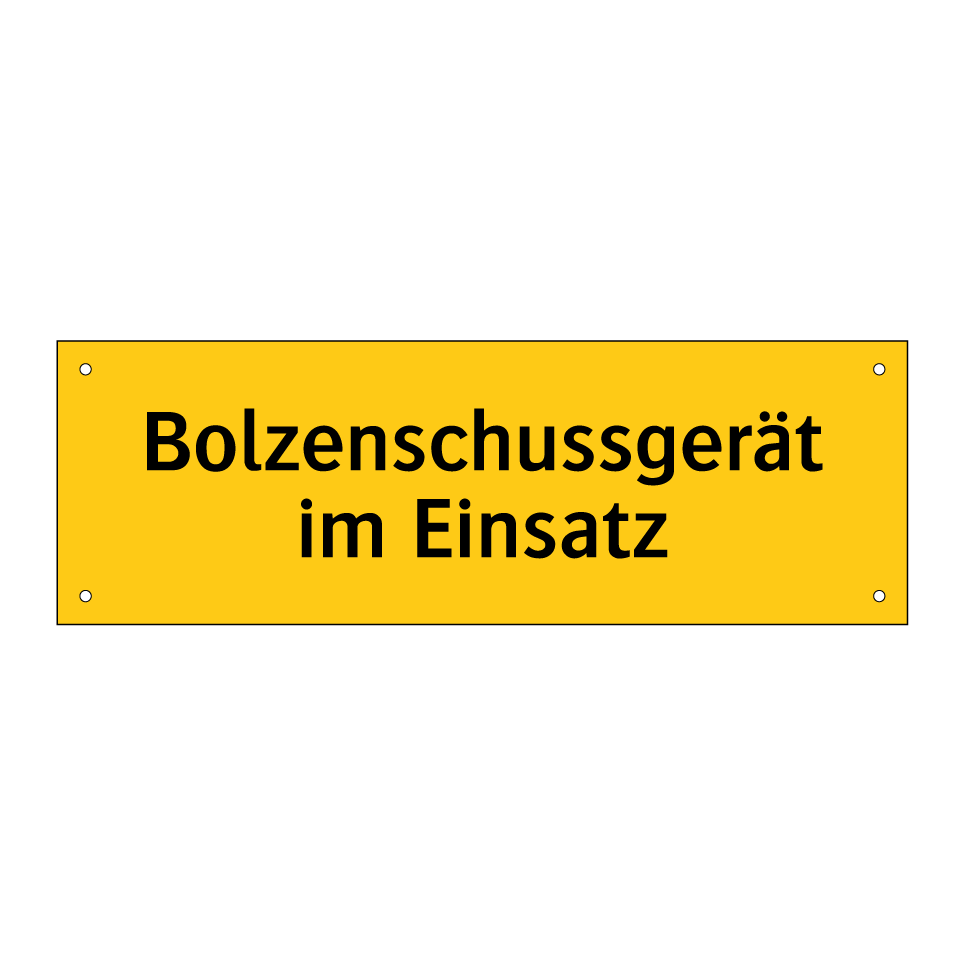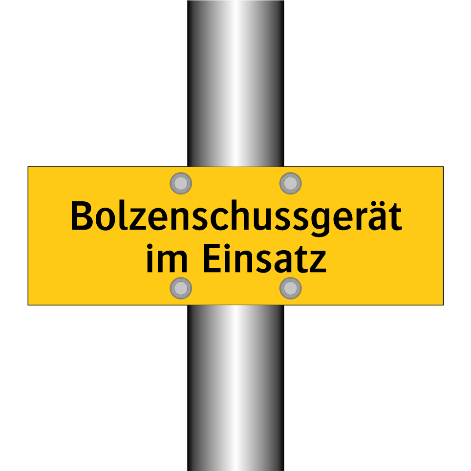 Warnschild mit dem Text Bolzenschussgerät im Einsatz