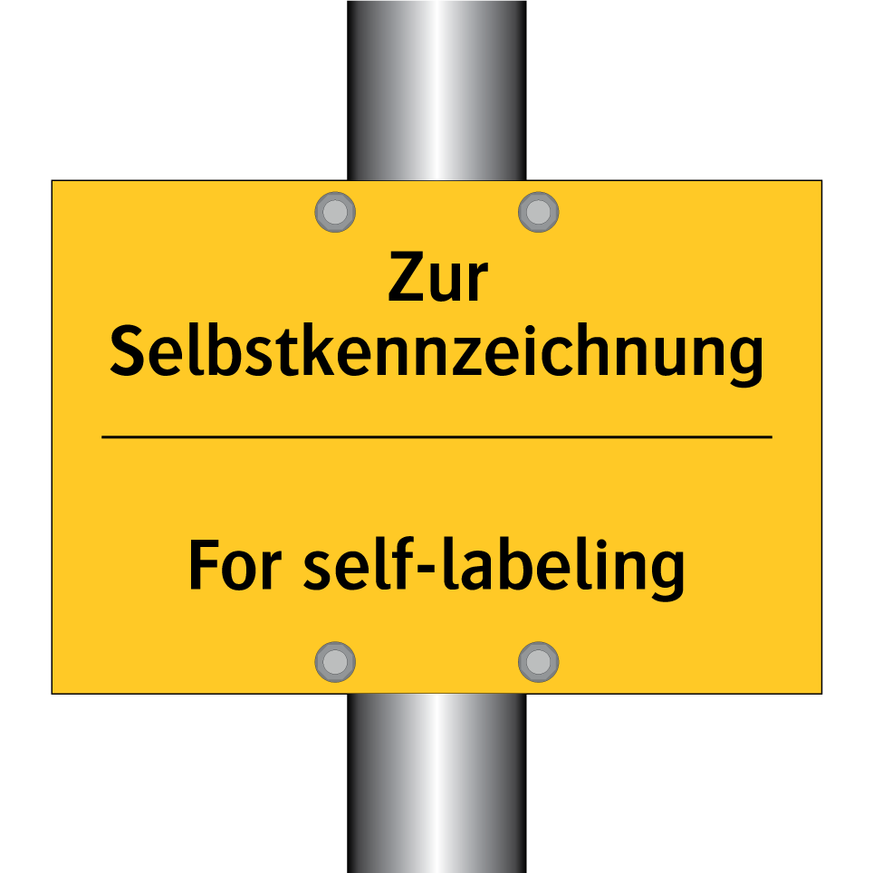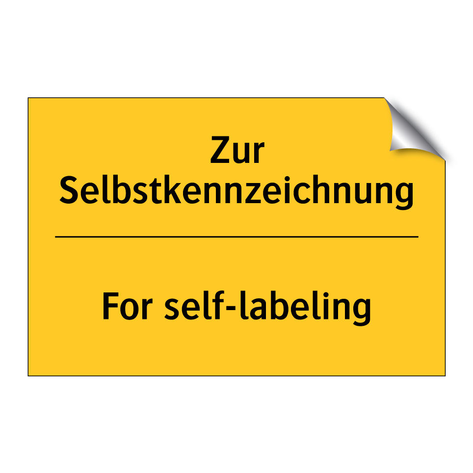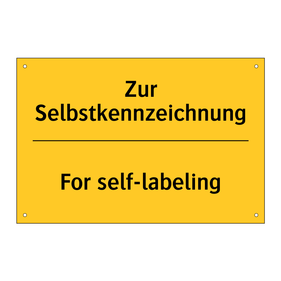 Zweisprachiges Warnschild mit deutschem Text Zur Selbstkennzeichnung und englischem Text For self-labeling