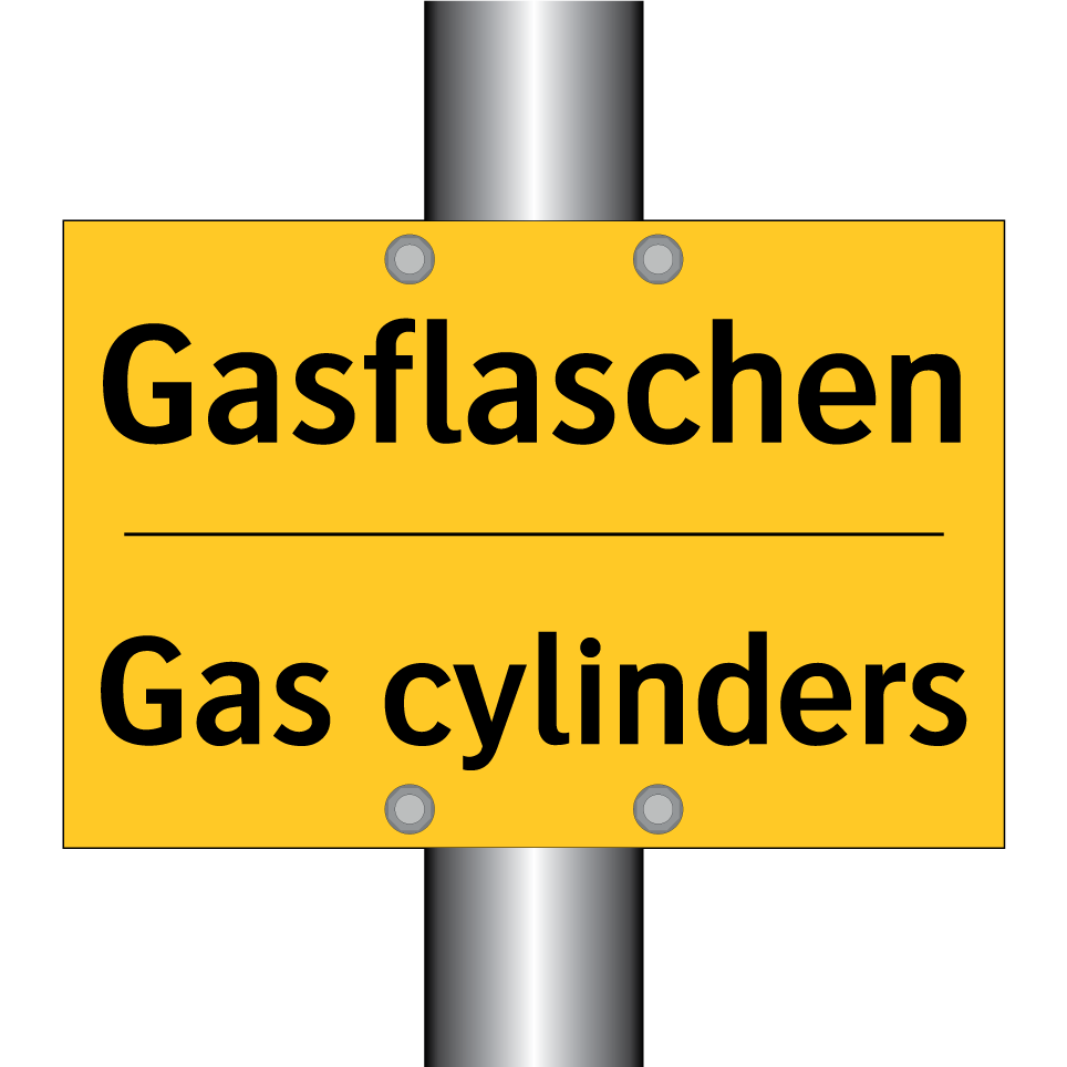 Zweisprachiges Warnschild mit deutschem Text Gasflaschen und englischem Text Gas cylinders