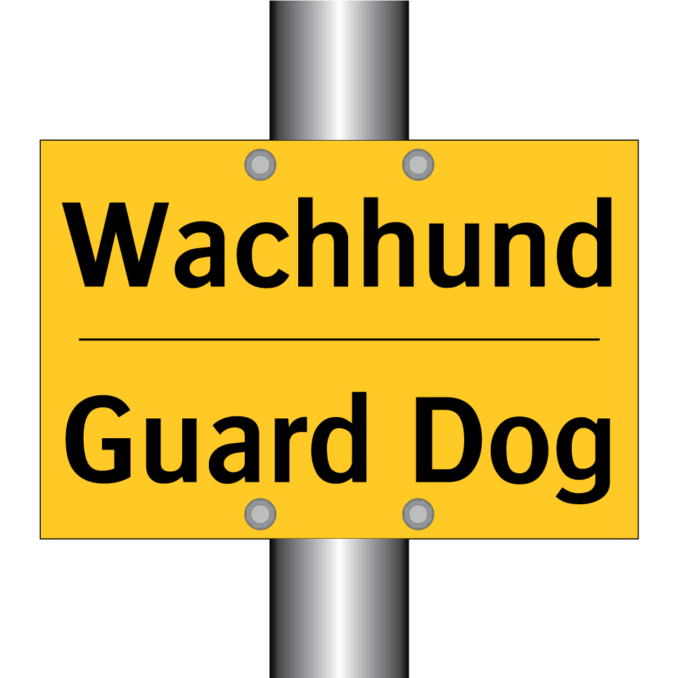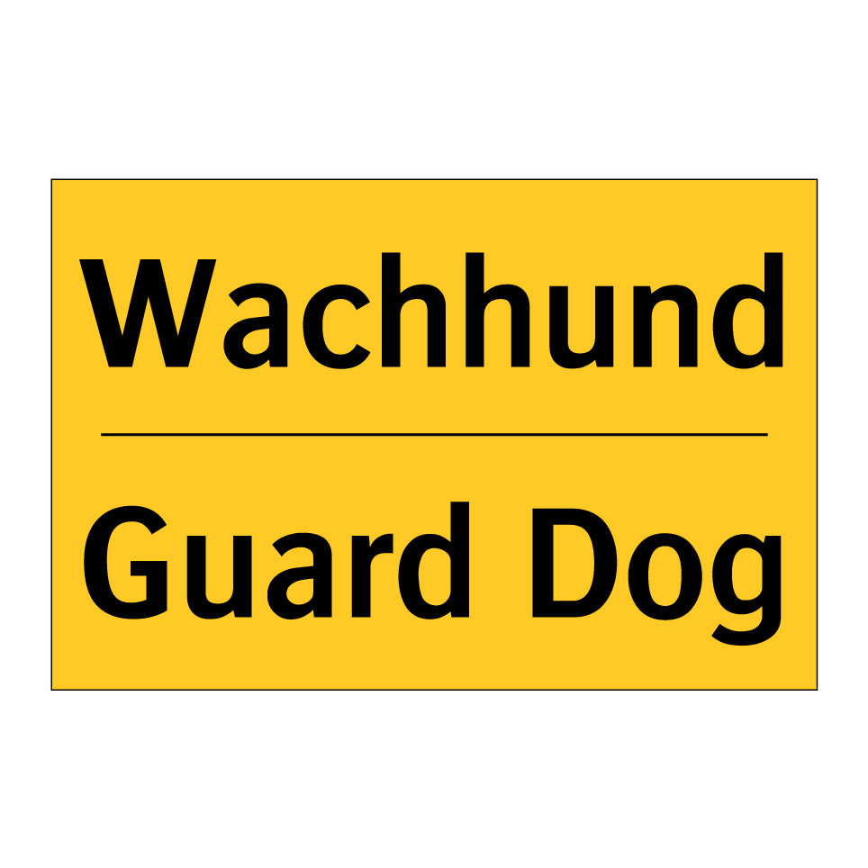 Zweisprachiges Warnschild mit deutschem Text Wachhund und englischem Text Guard Dog