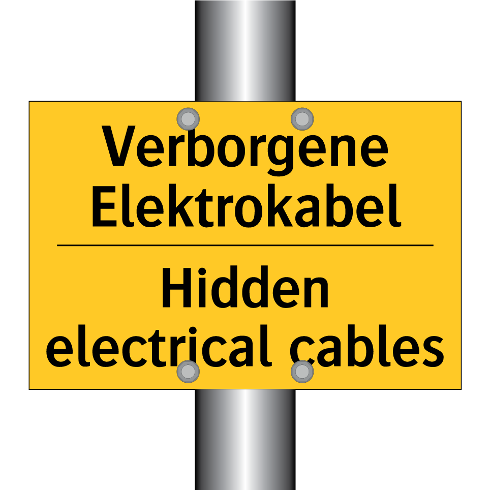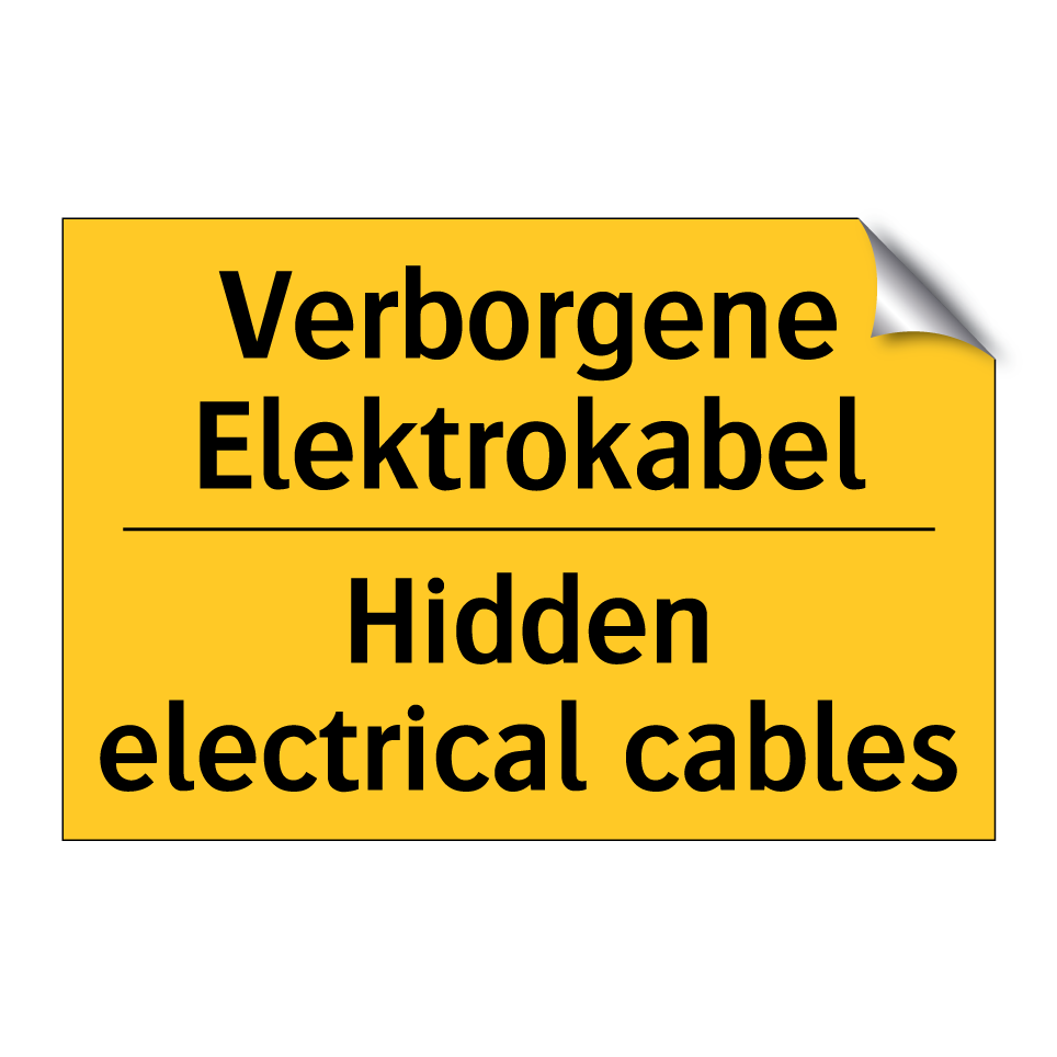 Zweisprachiges Warnschild mit deutschem Text Verborgene Elektrokabel und englischem Text Hidden electrical cables